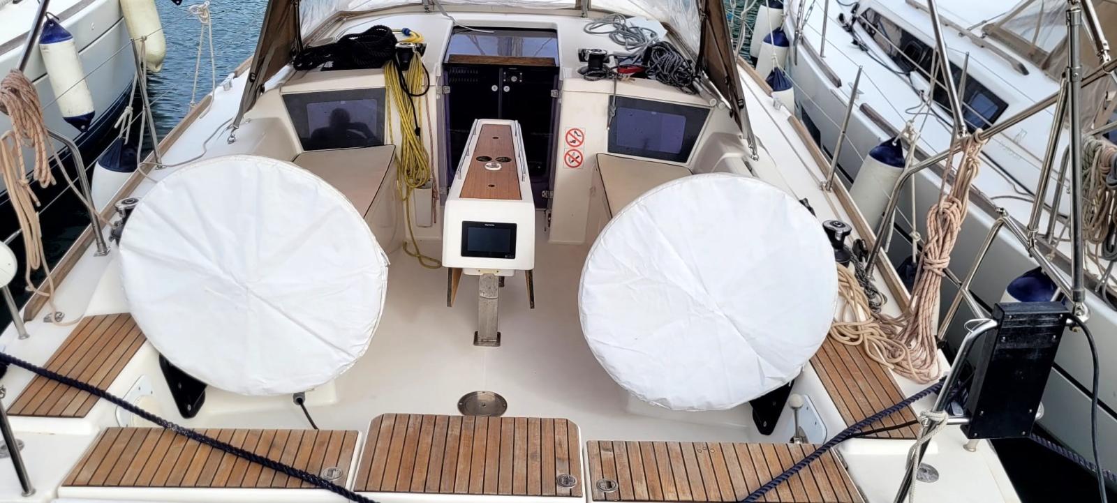Ancre (DELTA 16 KG Catena: 50 metri), 3 Batteries, Douche de cockpit, Plateforme arrière, Pompe de cale manuelle, Guindeau électrique, Echelle de bain, Système de filtration des eaux usées, table de cockpit, Annexe, 3 Winch.