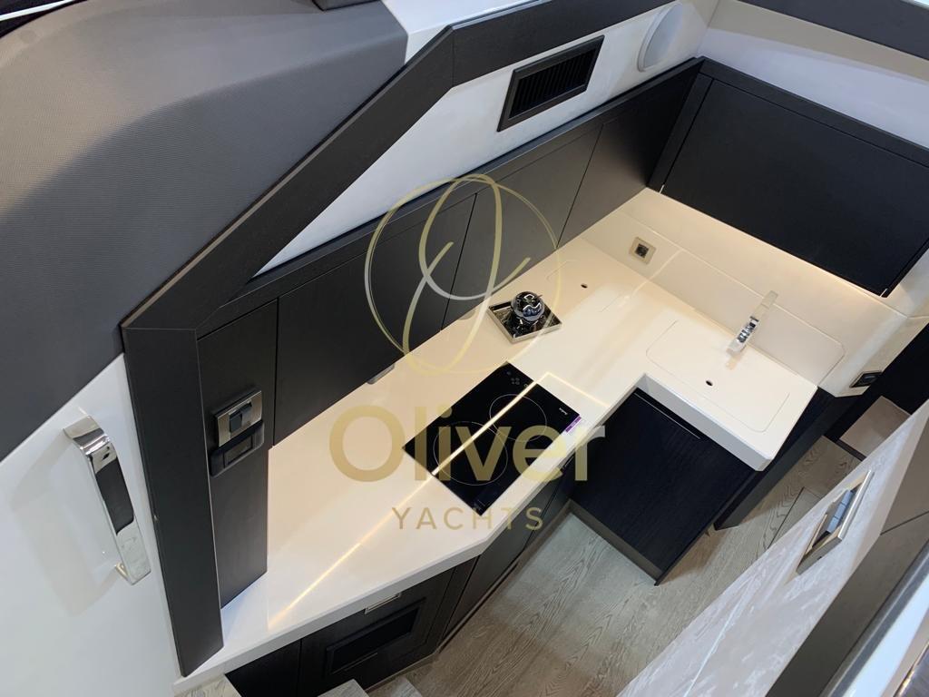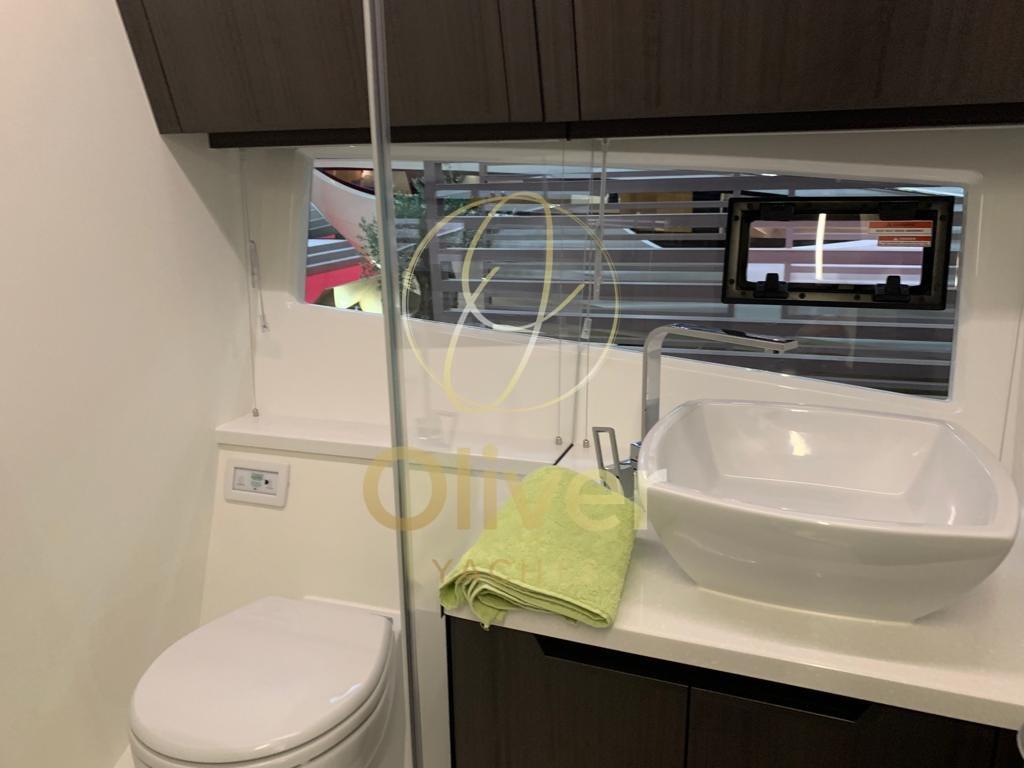 Alarme gaz, Alarme moteur, Alarme de pompe de cale, Ouverture du compartiment moteur électrique, Auto Dynamic Trim Interceptor, Eau sous pression, Trim hydraulique, Taquets pliants, Système de vidange, Passavant en teck (opzionale), Chargeur de batterie (opzionale), Couleur spéciale (opzionale, verniciatura a polvere o gelcoat), Douche de cockpit, Propulseur de poupe (opzionale), Phares fixes arrière, Flaps hydrauliques, Garage à annexe, Bossoirs pour annexe, Hard top, Extincteur(s) fixe(s), Indicateurs de flaps, Lavabo dans le cockpit, Éclairage de courtoisie, Spots sous-marins (opzionale), Passerelle (opzionale), Plateforme arrière (idraulica opzionale fissa di serie e con scaletta da bagno), Pompe de cale automatique, Pompe de cale manuelle, Porte latérale, Cockpit en teck (opzionale), Prise de quai, Connexion eau sous pression à quai, Guindeau électrique, Echelle de bain, Système de filtration des eaux usées, Stabilisateurs (opzionale (zipwake)), table de cockpit, Table pliante de salon, Filières avec sortie latèrale, Corne, Pont en teck (opzionale), Winch électrique arrière, Winch électrique avant.