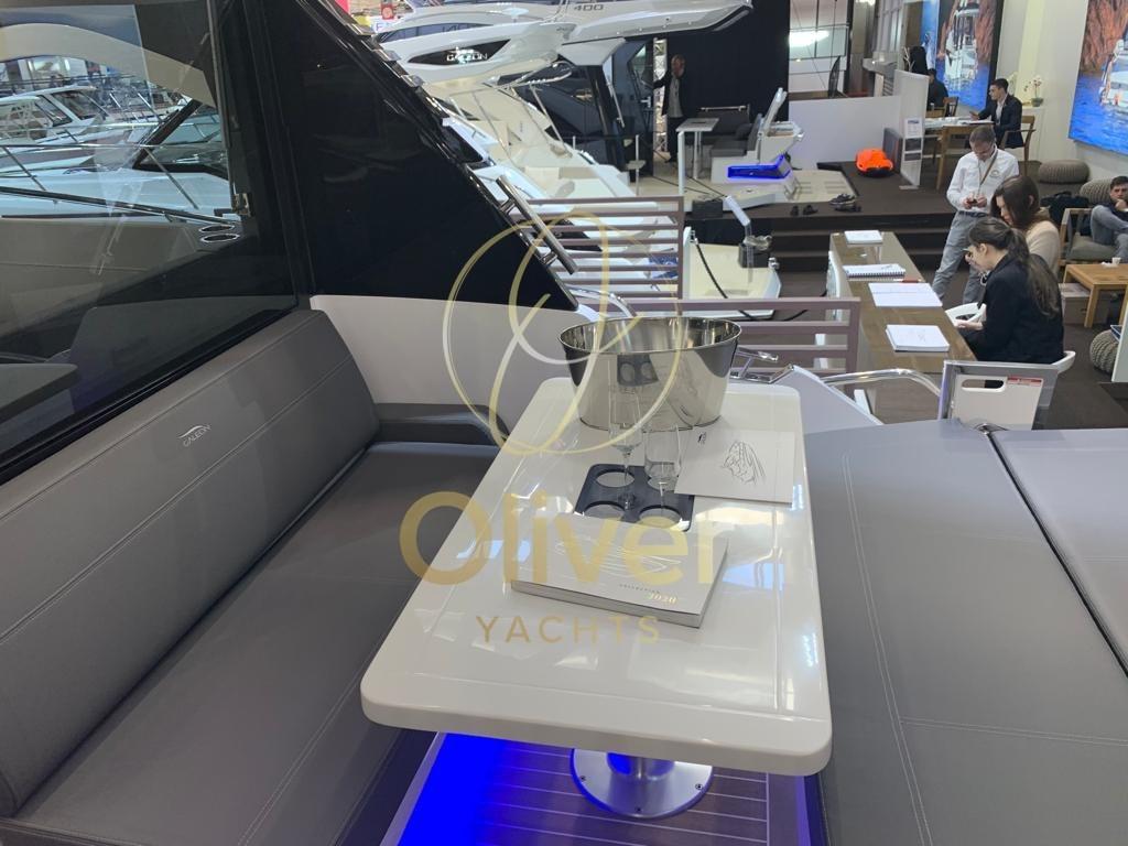 Le 425 HTS suit le concept de croiseur express du Galleon 485 où le pont principal est une zone sèche protégée du bruit et des intempéries par une combinaison de portes et de fenêtres en verre. Cela lui permet également de s’adapter au chauffage et à la climatisation, une caractéristique bienvenue dans la plupart des climats.
