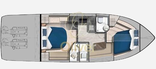 Ligne attrayante et dynamique. Deux cabines et deux salles de bains.