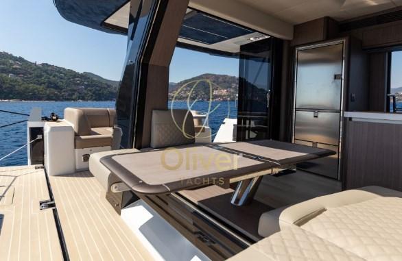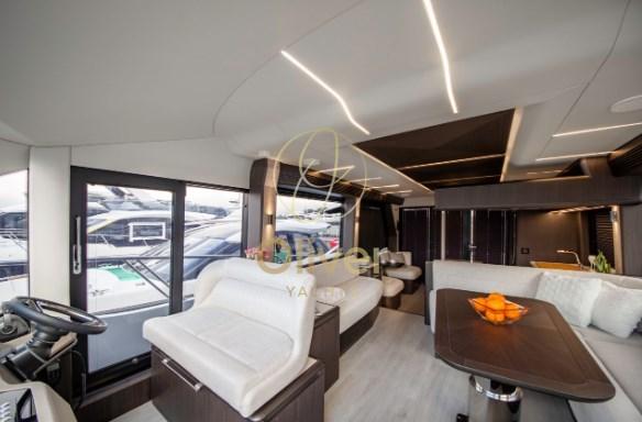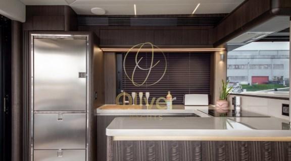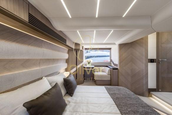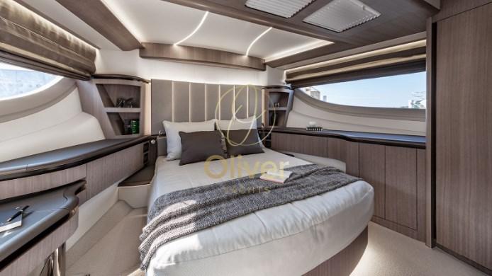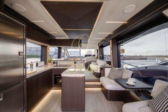 À l’intérieur, les intérieurs exclusifs et entièrement personnalisables sont un mélange de tendances de design moderne et d’accessoires de luxe fabriqués à la main avec une grande variété de boiseries, de tissus et de détails. Le pont principal offre une cuisine généreusement aménagée avec des divertissements et une salle à manger déplacés à l’avant. La 560 FLY vise à maintenir l’équilibre fragile entre praticité et volume intérieur, en repoussant les limites du design et de la finition haut de gamme.