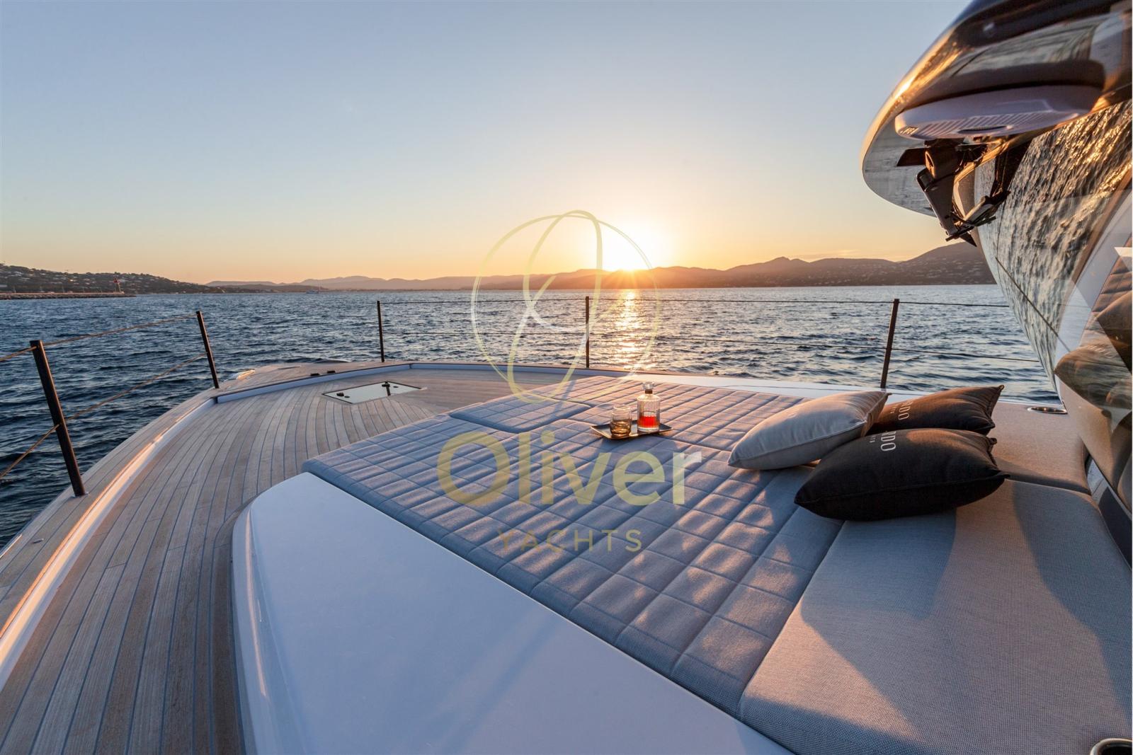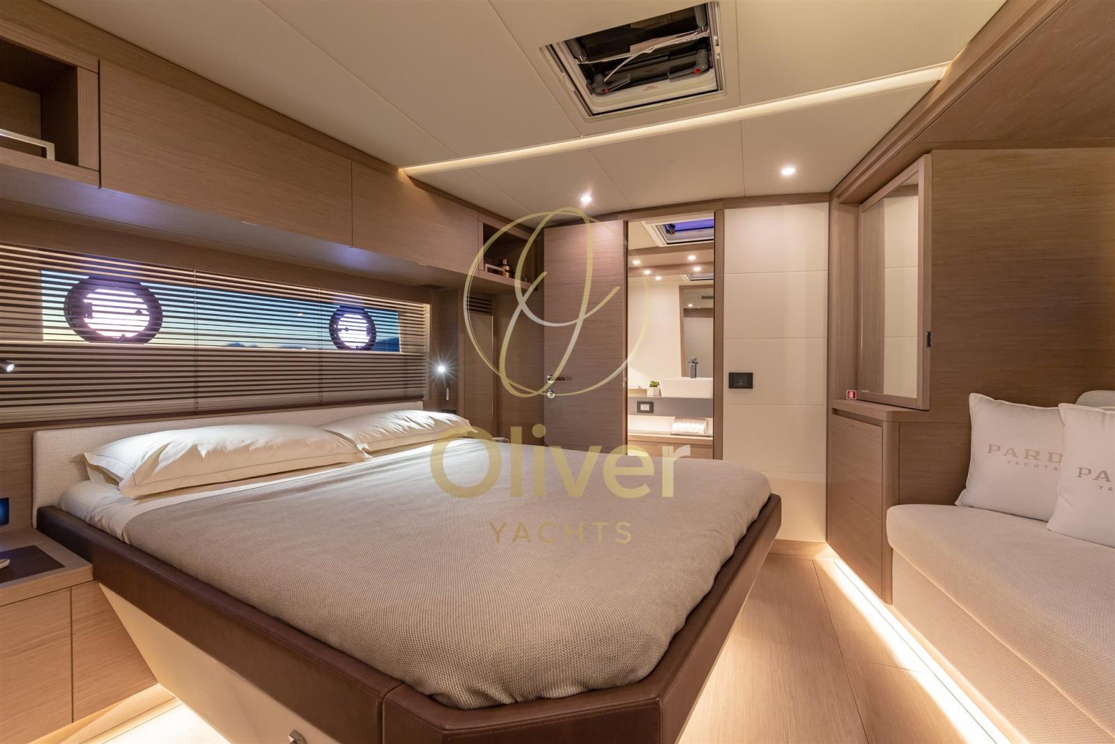 Les intérieurs signés Nauta Design sont les meilleurs de leur catégorie pour la fonctionnalité, la praticité, l’élégance et les finitions. À l’avant, la cabine principale pleine largeur est équipée d’un lit king-size avec une tête de lit latérale, ce qui permet de grands volumes et un espace de rangement supplémentaire. La grande salle de bain privée avec douche séparée est extrêmement raffinée dans les moindres détails.