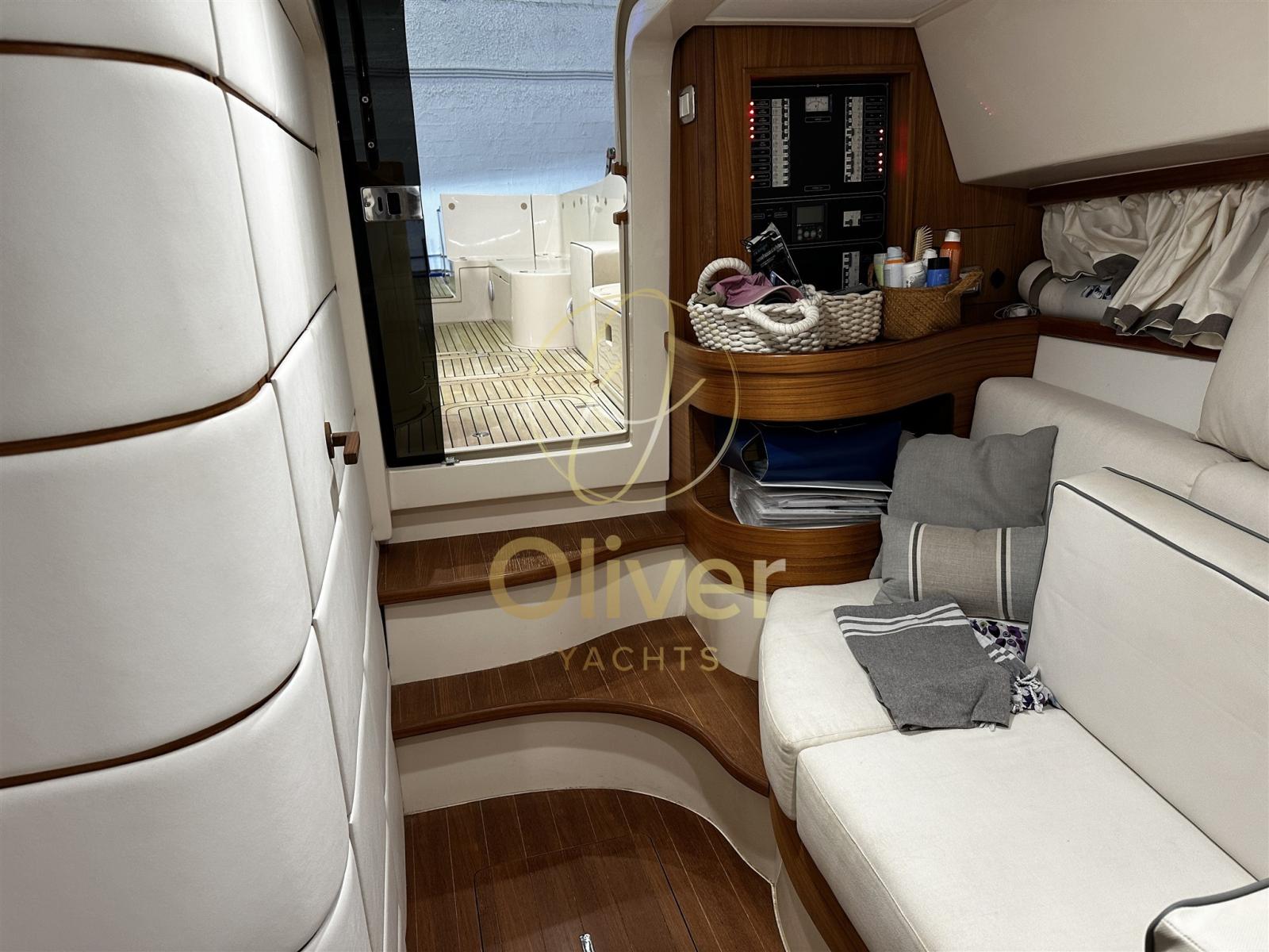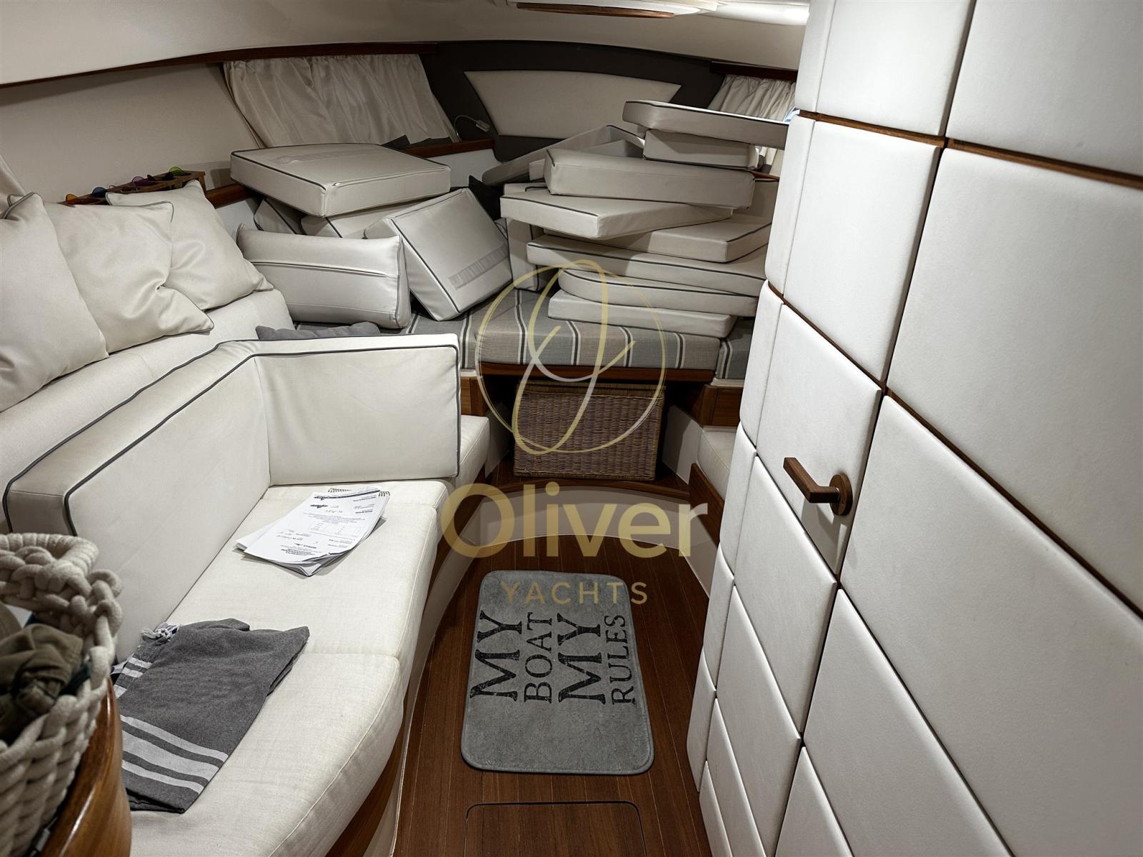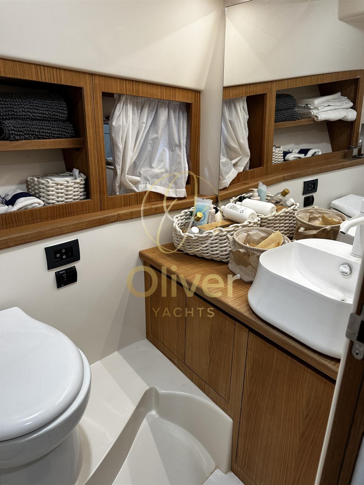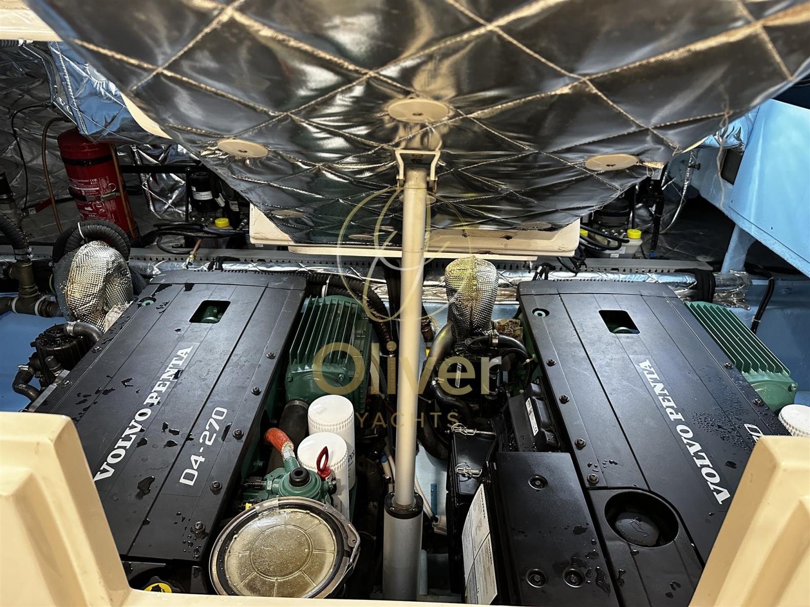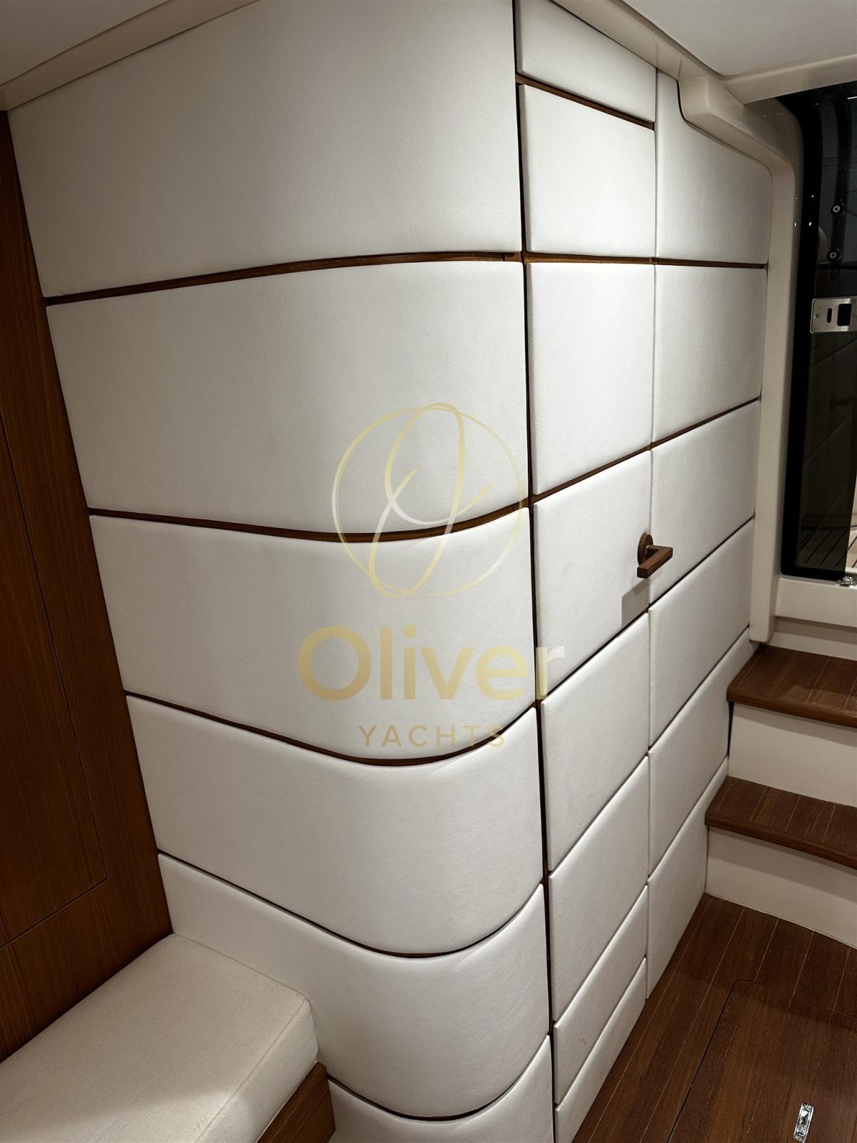 Alarme moteur, Alarme de pompe de cale, Ouverture du compartiment moteur électrique (Sala macchine poppa), Eau sous pression, Passavant en teck (fino a ponte di prua), Douche de cockpit, Flaps hydrauliques, Hard top, Extincteur(s) fixe(s), Indicateurs de flaps, Lavabo dans le cockpit, Éclairage de courtoisie, Passerelle (Besenzoni bianca a scomparsa), Pompe de cale automatique, Cockpit en teck (Pozzetto completo), Prise de quai, Onduleur, Guindeau électrique, table de cockpit (Elettrico pozzetto di poppa).