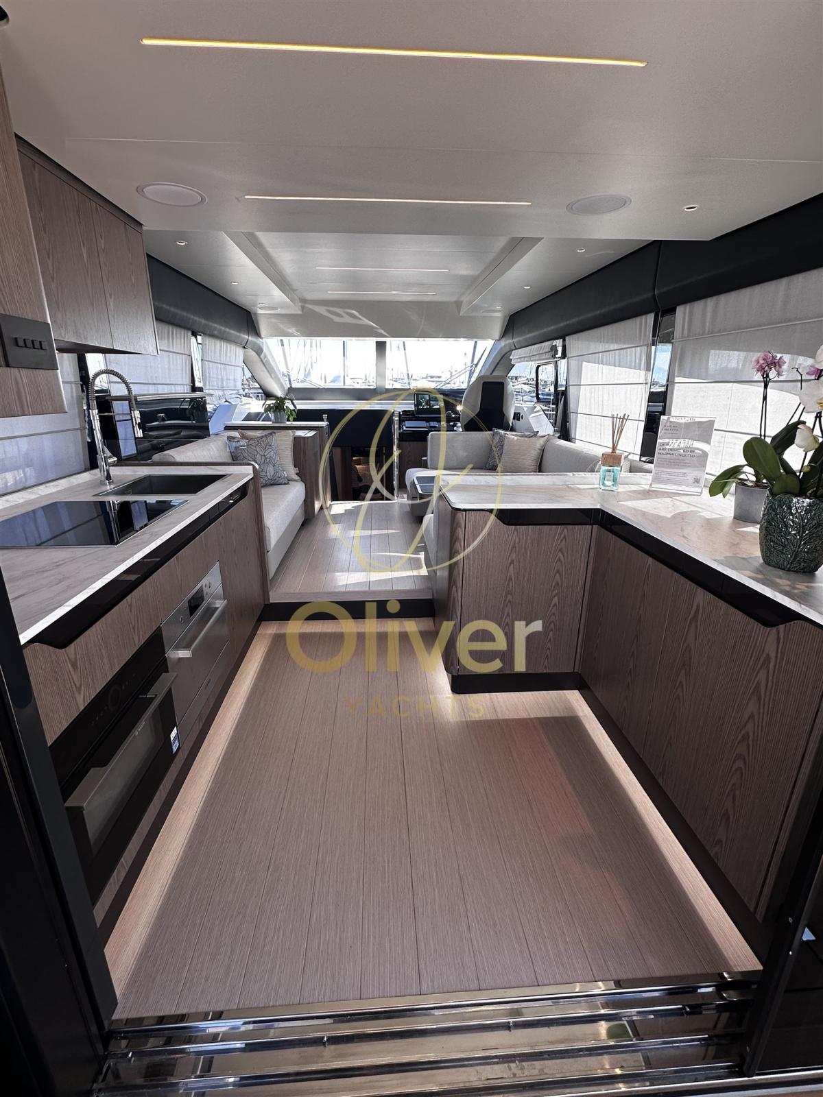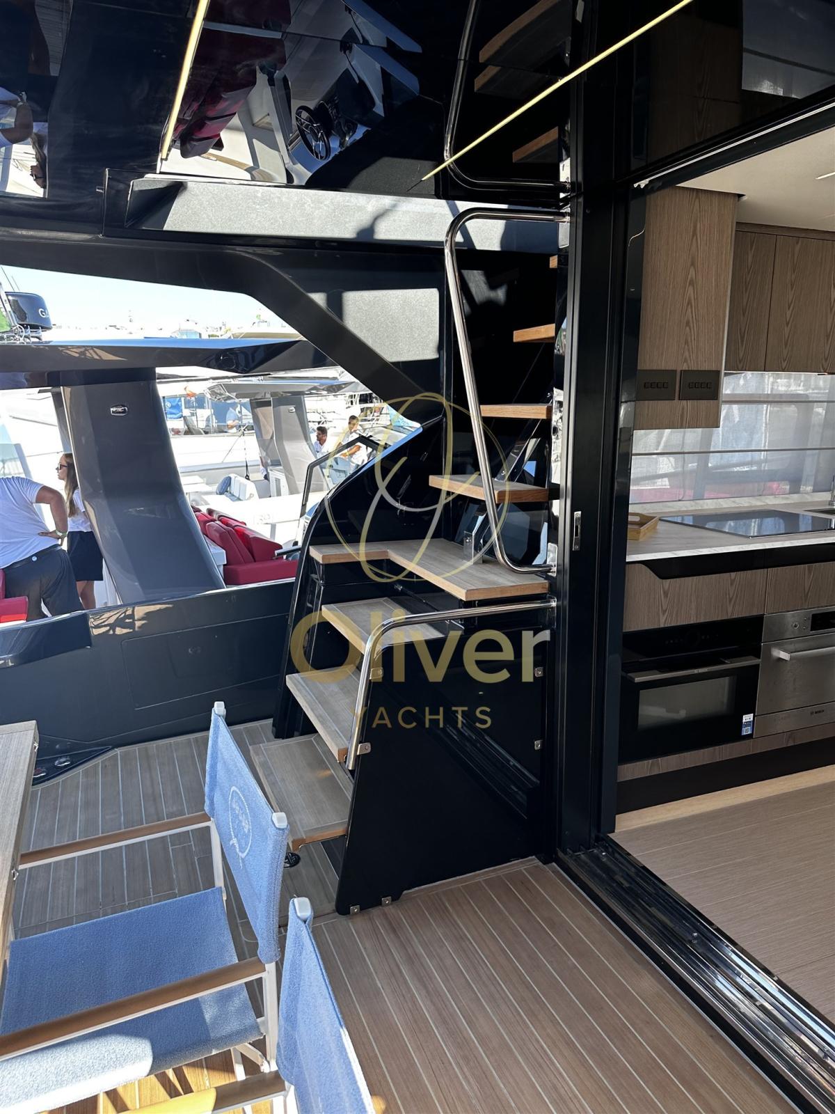 Alarme moteur, Ouverture du compartiment moteur électrique, Auto Dynamic Trim Interceptor, Eau sous pression, Passavant en teck, Couleur spéciale, Douche de cockpit, Flaps électriques, Garage à annexe, Extincteur(s) fixe(s), Indicateurs de flaps, Éclairage de courtoisie, Spots sous-marins, Passerelle, Plateforme arrière, Cockpit en teck, Prise de quai, Guindeau électrique, Echelle de bain, table de cockpit, Corne.