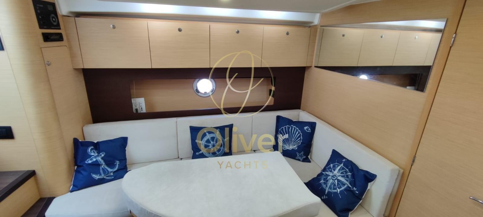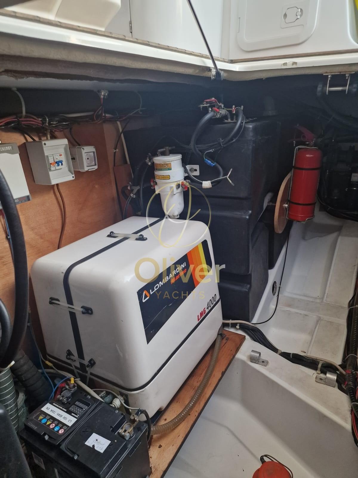 Alarme moteur, Eau sous pression, 3 Batteries (3 DA 120 AMP), Douche de cockpit, Flaps hydrauliques, Hard top, Passerelle, Plateforme arrière, Pompe de cale manuelle, Cockpit en teck, Prise de quai, Connexion eau sous pression à quai, Onduleur, Rollbar, Guindeau électrique, Echelle de bain, table de cockpit.