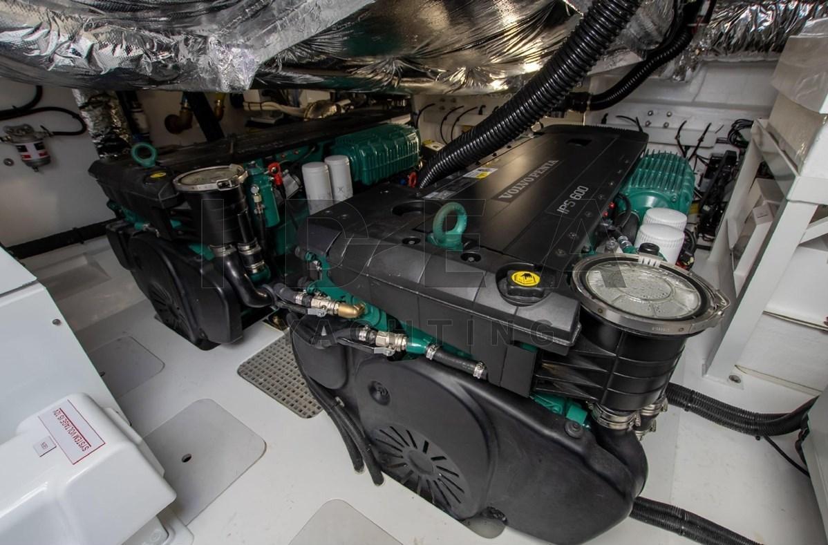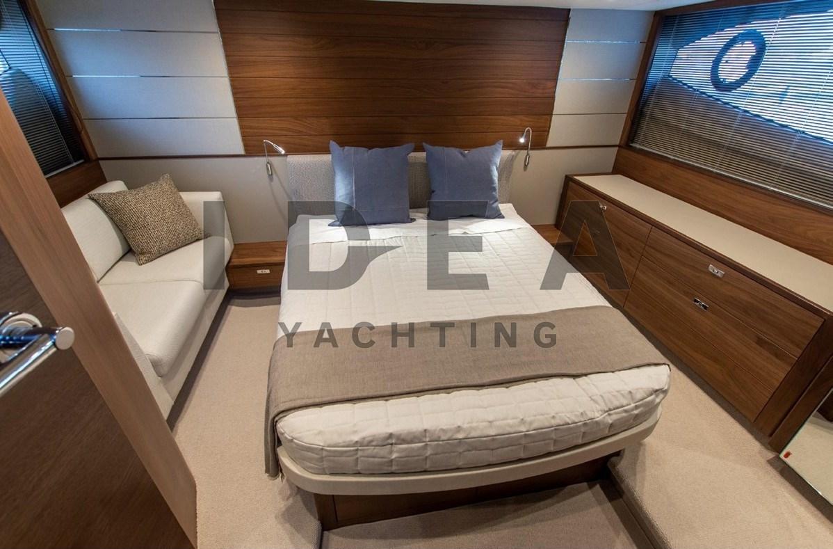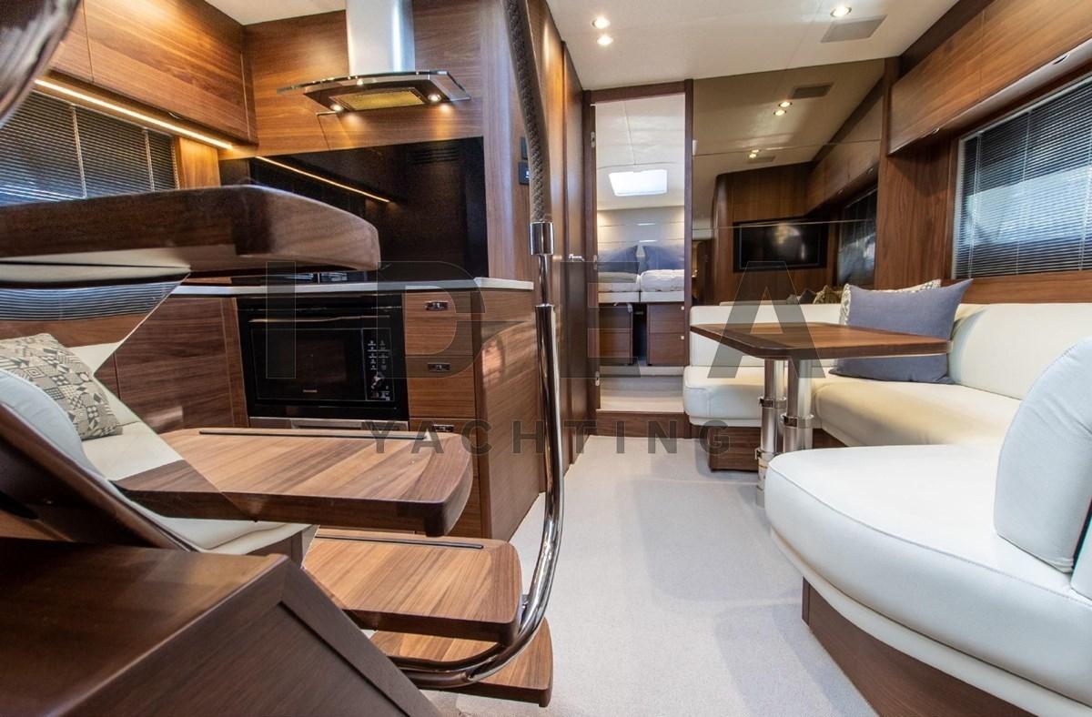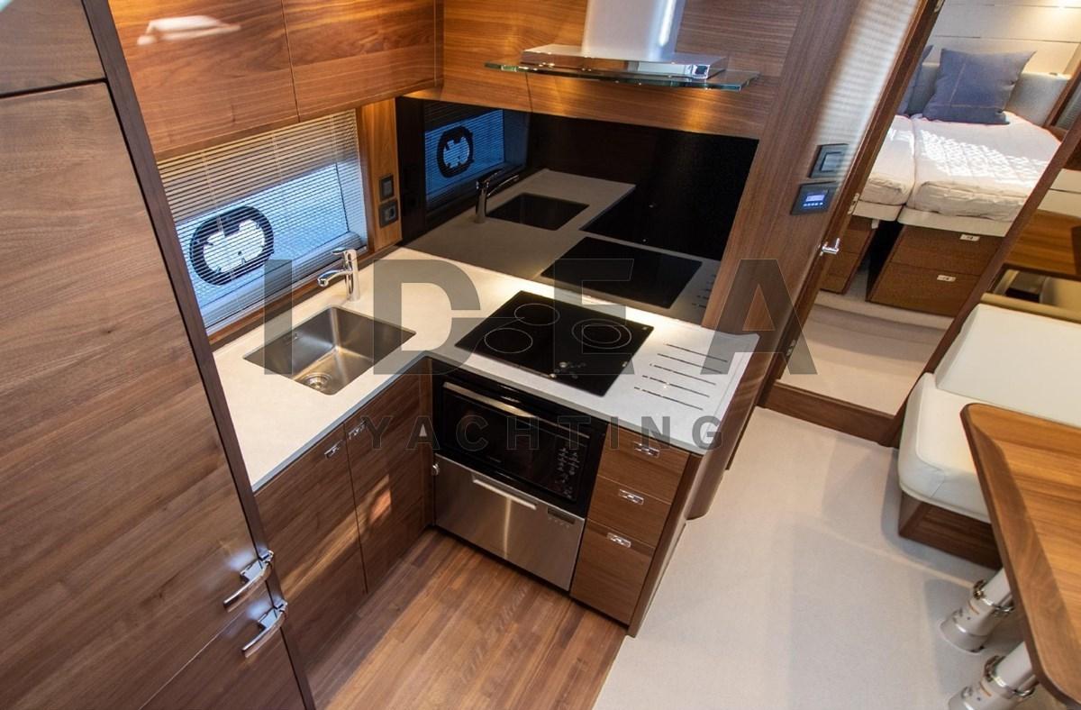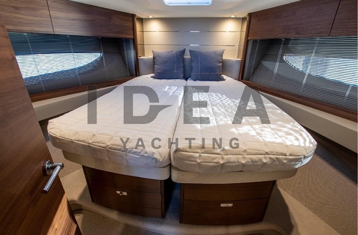 Le cockpit est parfait pour se divertir, équipé de nombreux sièges, d’un bar et d’un grill, ainsi que d’un bain de soleil sur le pont avant. Un garage accueille une annexe et des jouets aquatiques tandis qu’une plate-forme de bain hydraulique offre un accès facile à la mer.