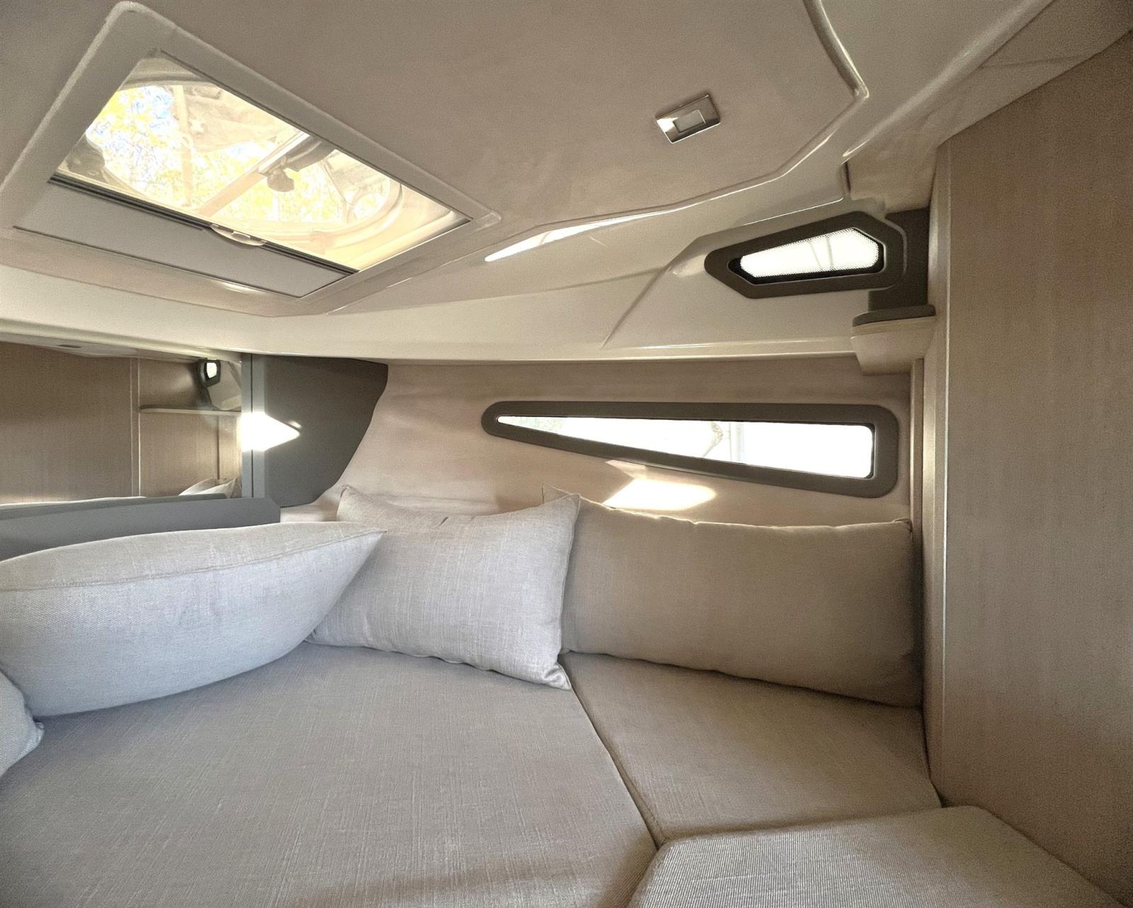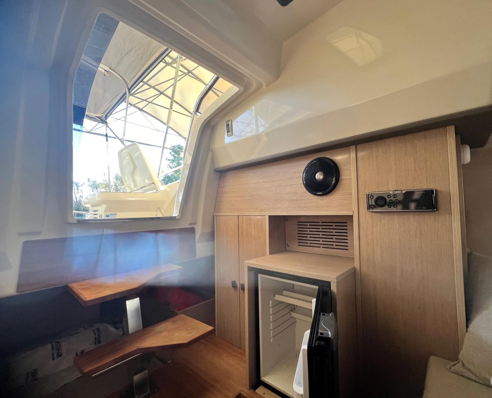 Alarme moteur, Eau sous pression, 3 Batteries, Douche de cockpit, Flaps hydrauliques, Extincteur(s) fixe(s), Plateforme arrière, Cockpit en teck, Prise de quai, Guindeau électrique, Echelle de bain.