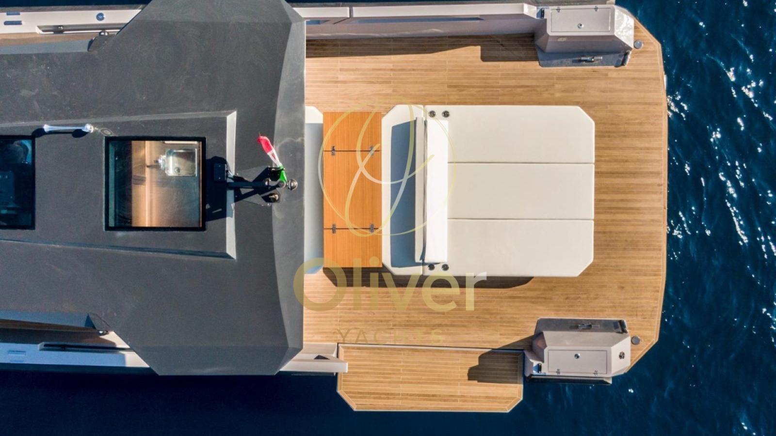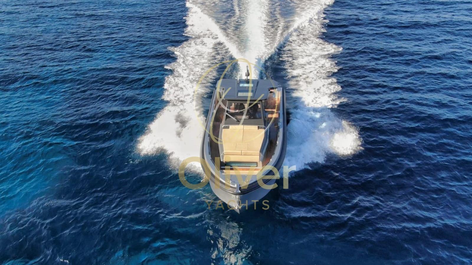 Alarme gaz, Alarme moteur, Alarme de pompe de cale, Ouverture du compartiment moteur électrique (pneumatica), Auto Dynamic Trim Interceptor, Eau sous pression, Taquets pliants, Passavant en teck, Douche de cockpit, Phares fixes arrière, Extincteur(s) fixe(s), Éclairage de courtoisie, Spots sous-marins, Passerelle, Plateforme arrière, Pompe de cale automatique, Pompe de cale manuelle, Cockpit en teck, Prise de quai, Connexion eau sous pression à quai, Rollbar, Guindeau électrique, Echelle de bain, Table, table de cockpit, Corne, T-Top.