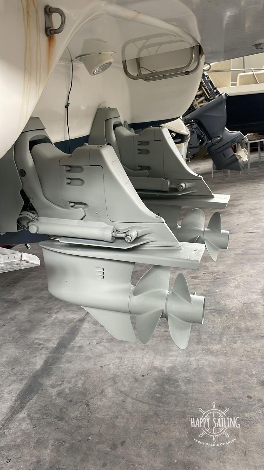 Alarme moteur, Eau sous pression, Douche de cockpit, Flaps hydrauliques, Extincteur(s) fixe(s), Indicateurs de flaps, Lavabo dans le cockpit, Éclairage de courtoisie, Plateforme arrière, Pompe de cale automatique, Cockpit en teck, Prise de quai, Rollbar, Guindeau électrique, Echelle de bain.