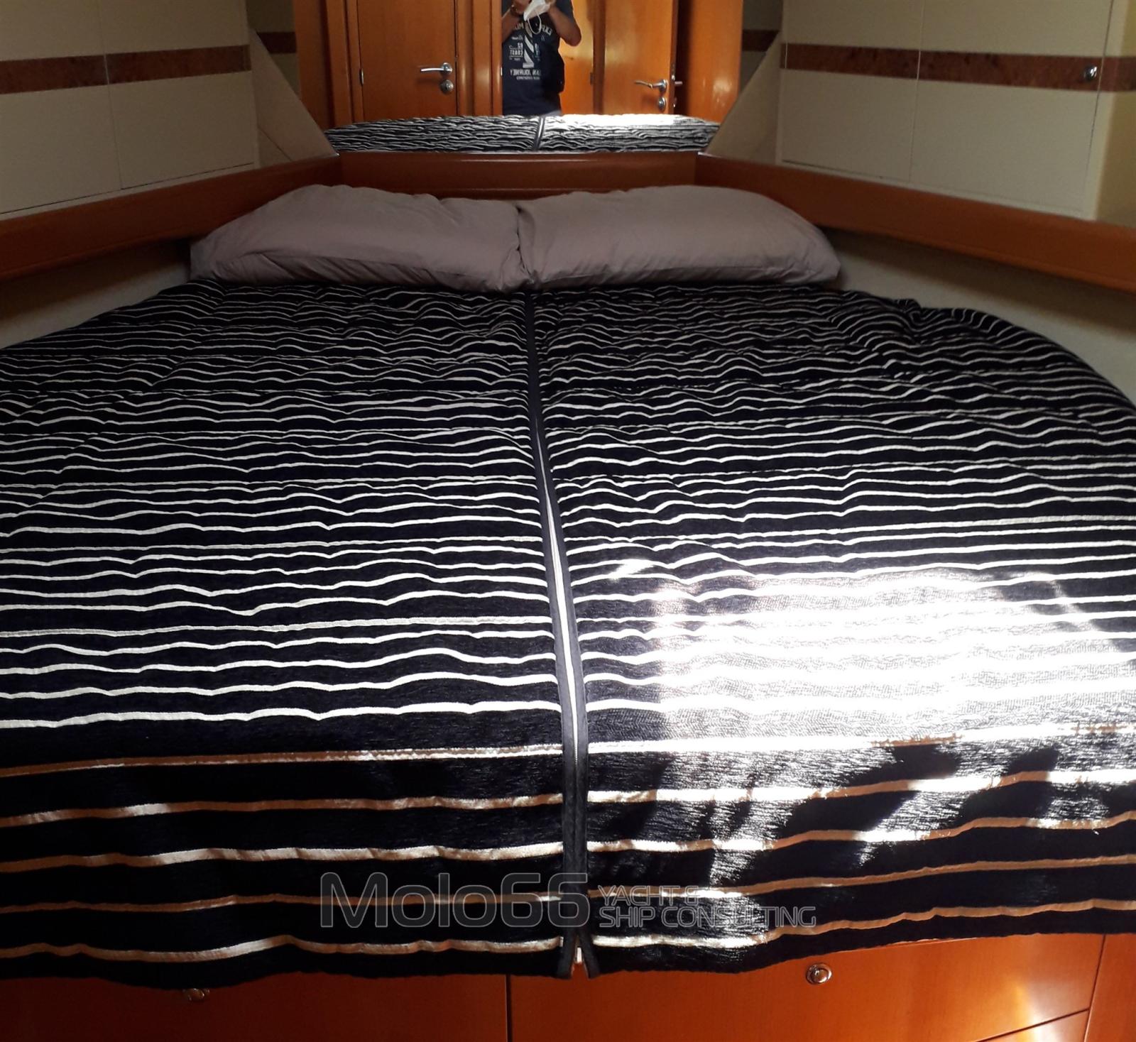 Alarme moteur, Alarme de pompe de cale, Eau sous pression, Couleur spéciale (Blu Navy), Douche de cockpit, Double barre à roue, Phare de poursuite, Flaps électriques, Extincteur(s) fixe(s), Indicateurs de flaps, Éclairage de courtoisie, Passerelle, Plateforme arrière, Pompe de cale automatique, Cockpit en teck, Prise de quai, Rollbar, Guindeau électrique, Echelle de bain, Corne, Winch électrique avant.
