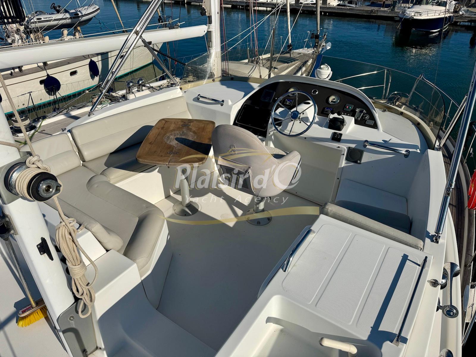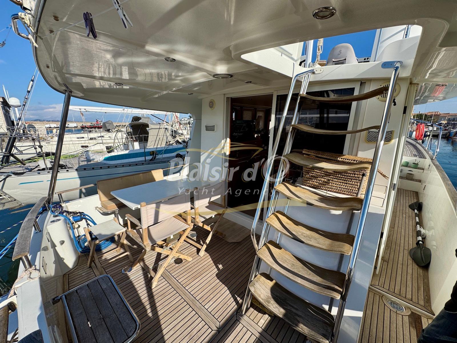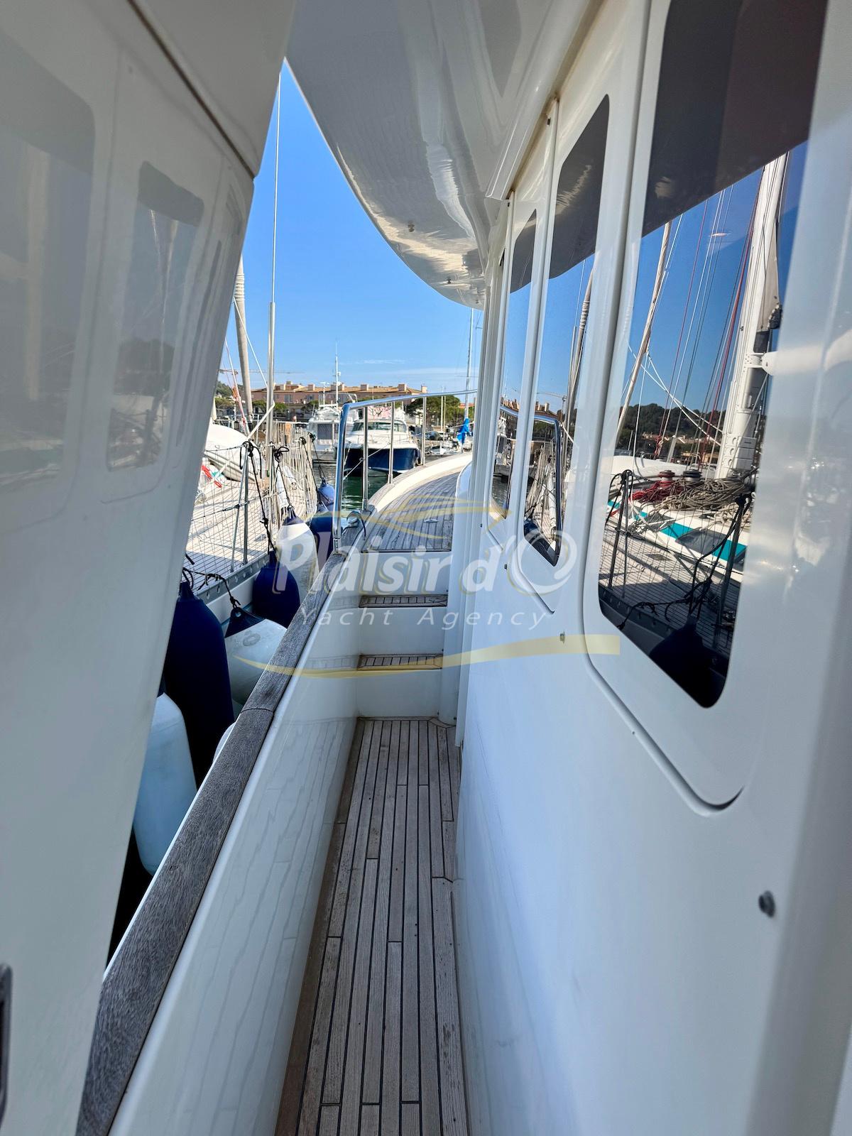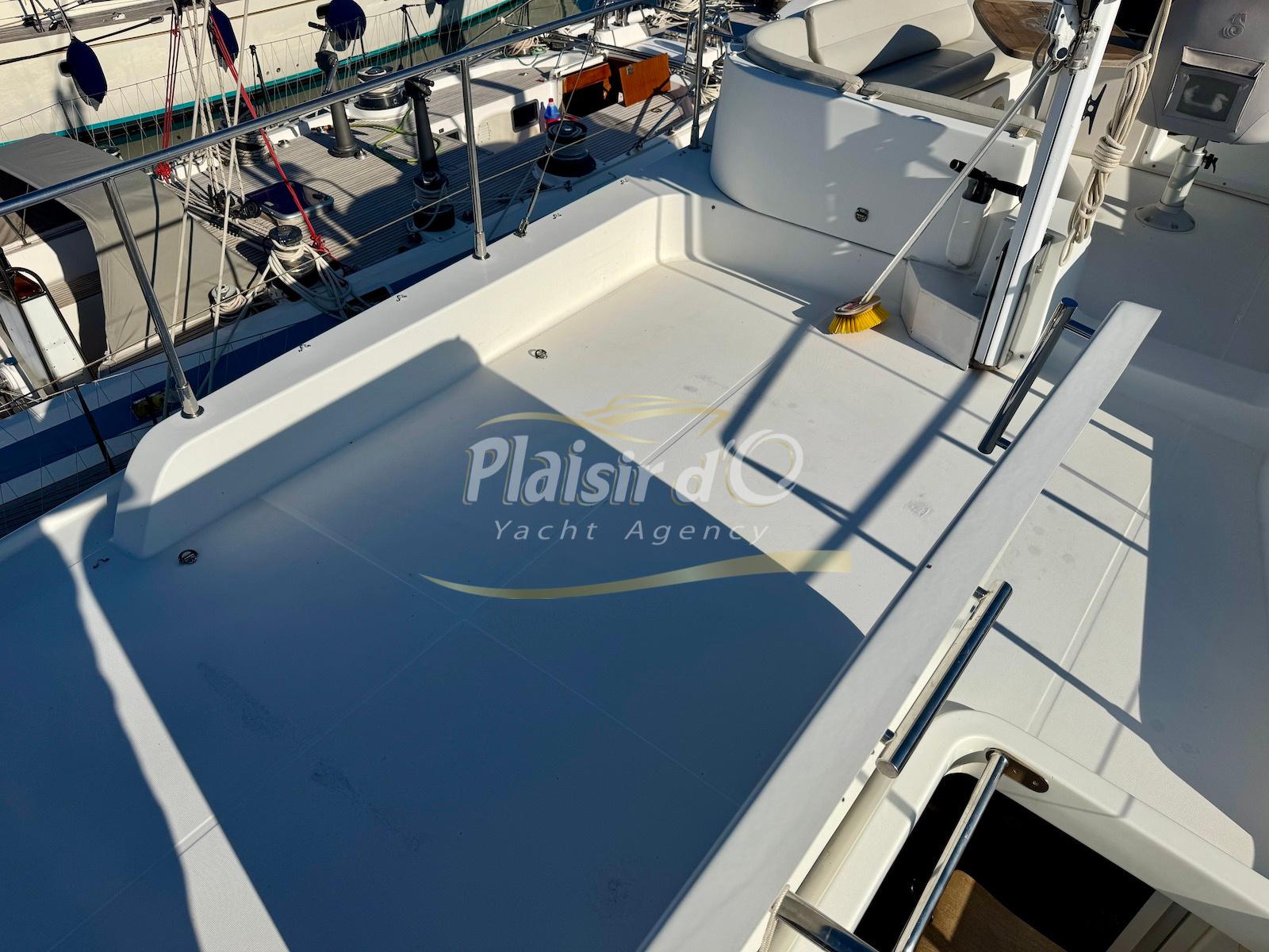 FULL OPTIONS : Climatisation réversible, générateur, passerelle hydraulique, pilote automatique, cockpit teck, GPS/sondeur Raymarine, propulseur d’étrave, VHF, TV, 2 réfrigérateurs, plateforme de bain allongée.