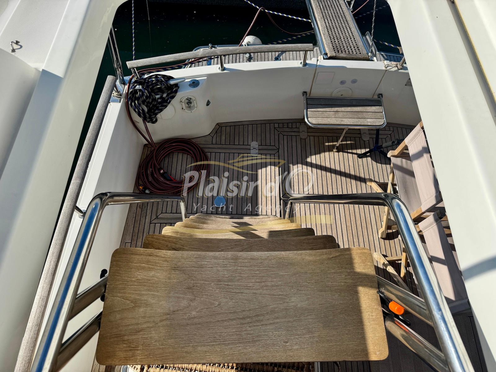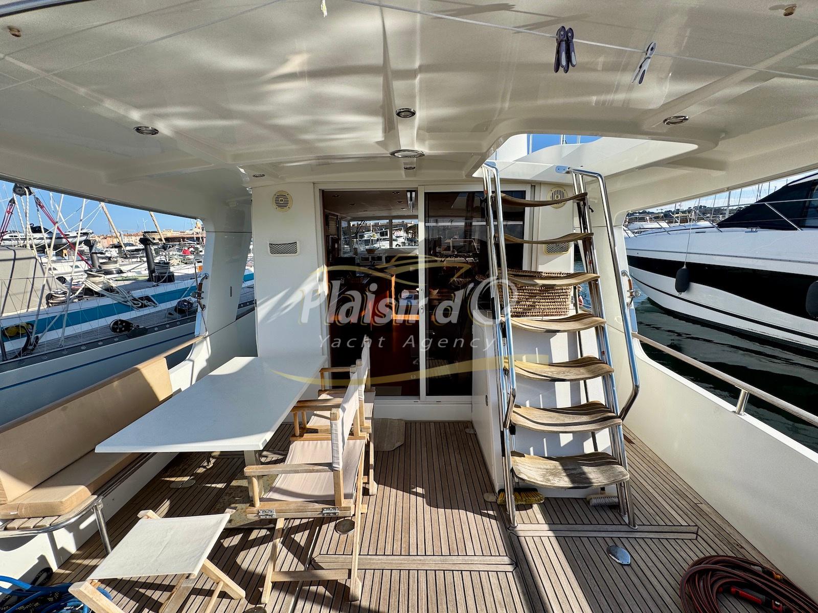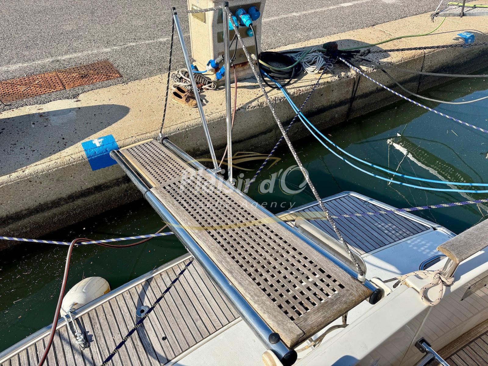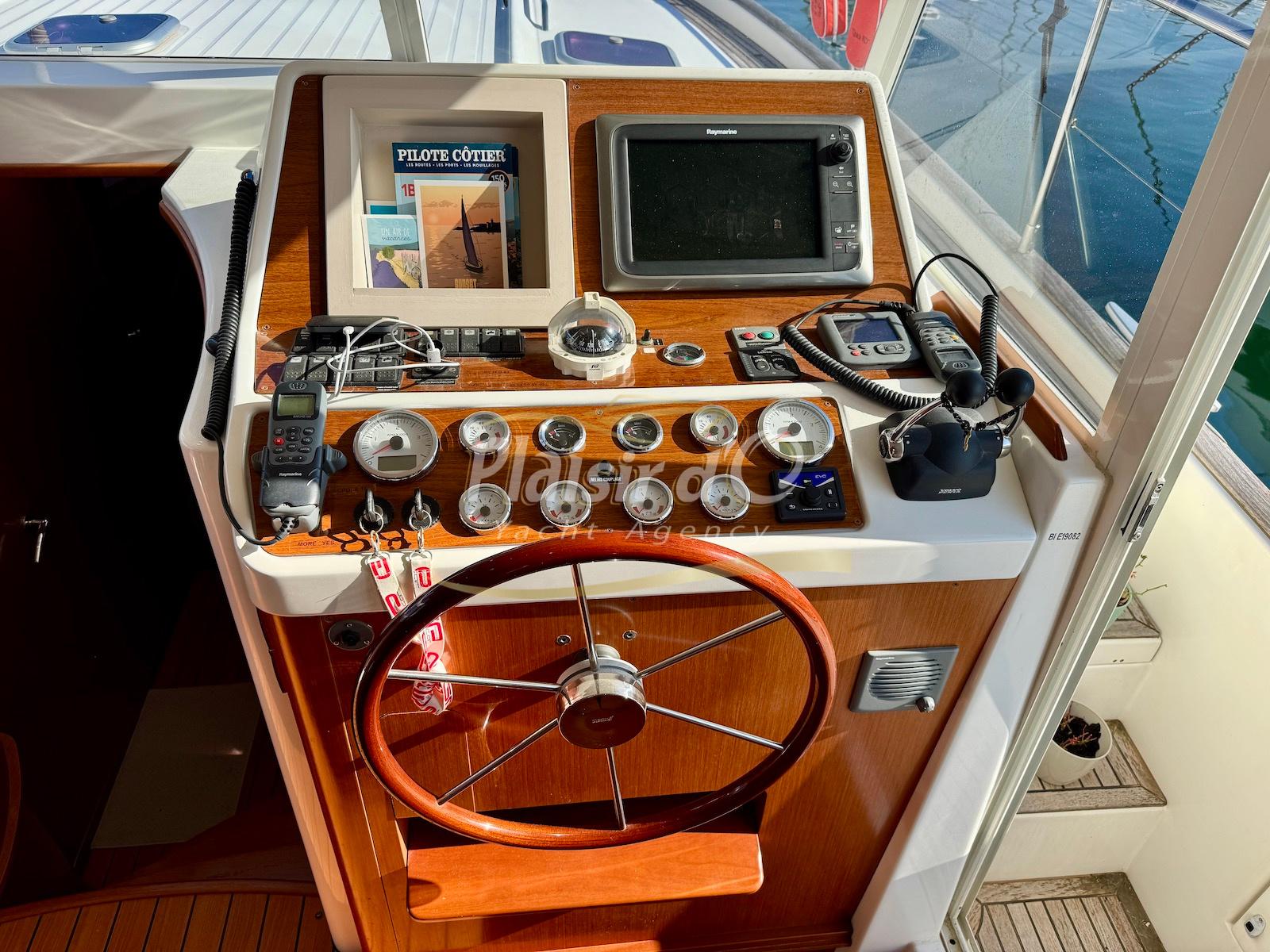 FULL OPTIONS : Climatisation réversible, générateur, passerelle hydraulique, pilote automatique, cockpit teck, GPS/sondeur Raymarine, propulseur d’étrave, VHF, TV, 2 réfrigérateurs, plateforme de bain allongée.
