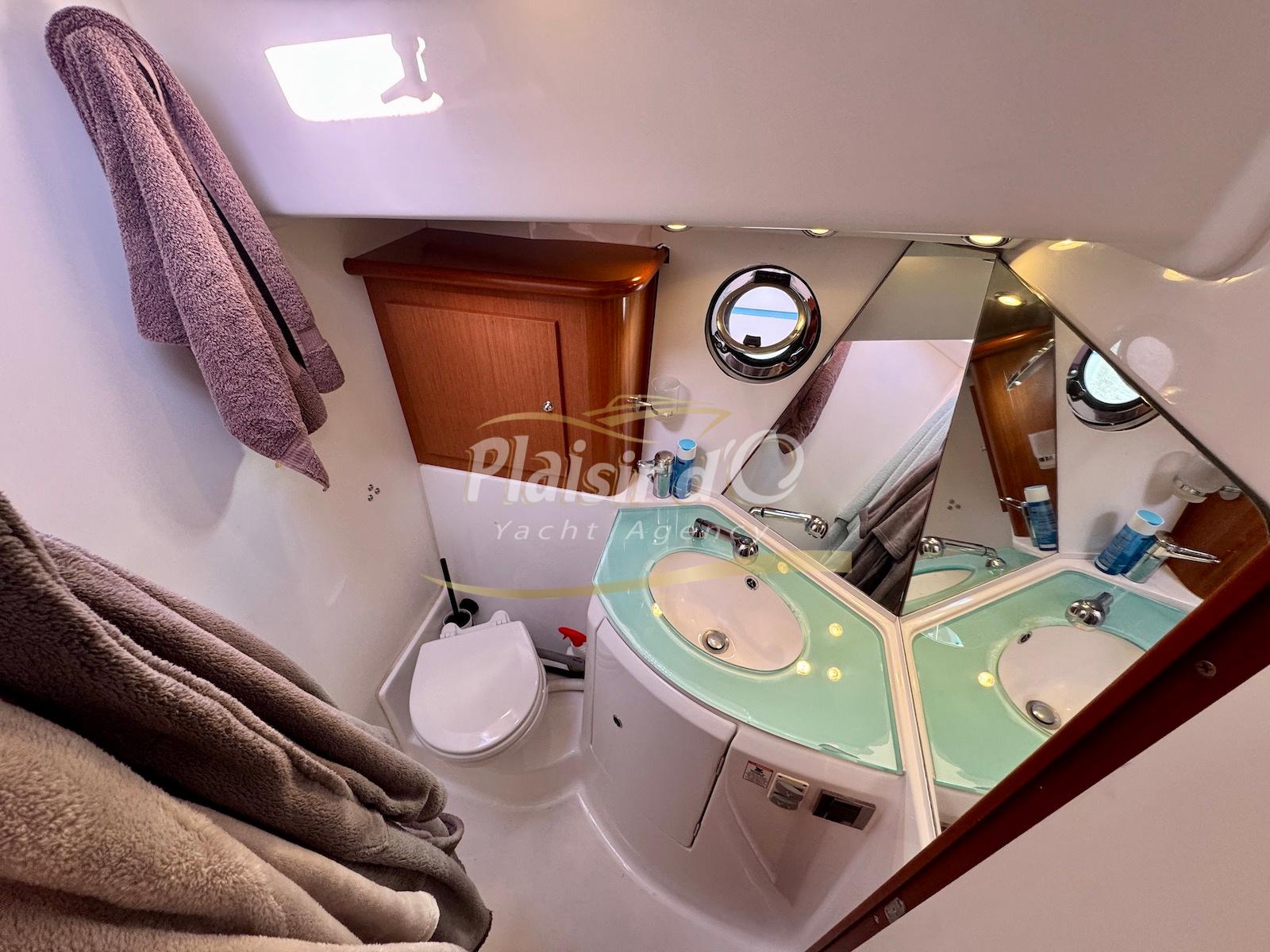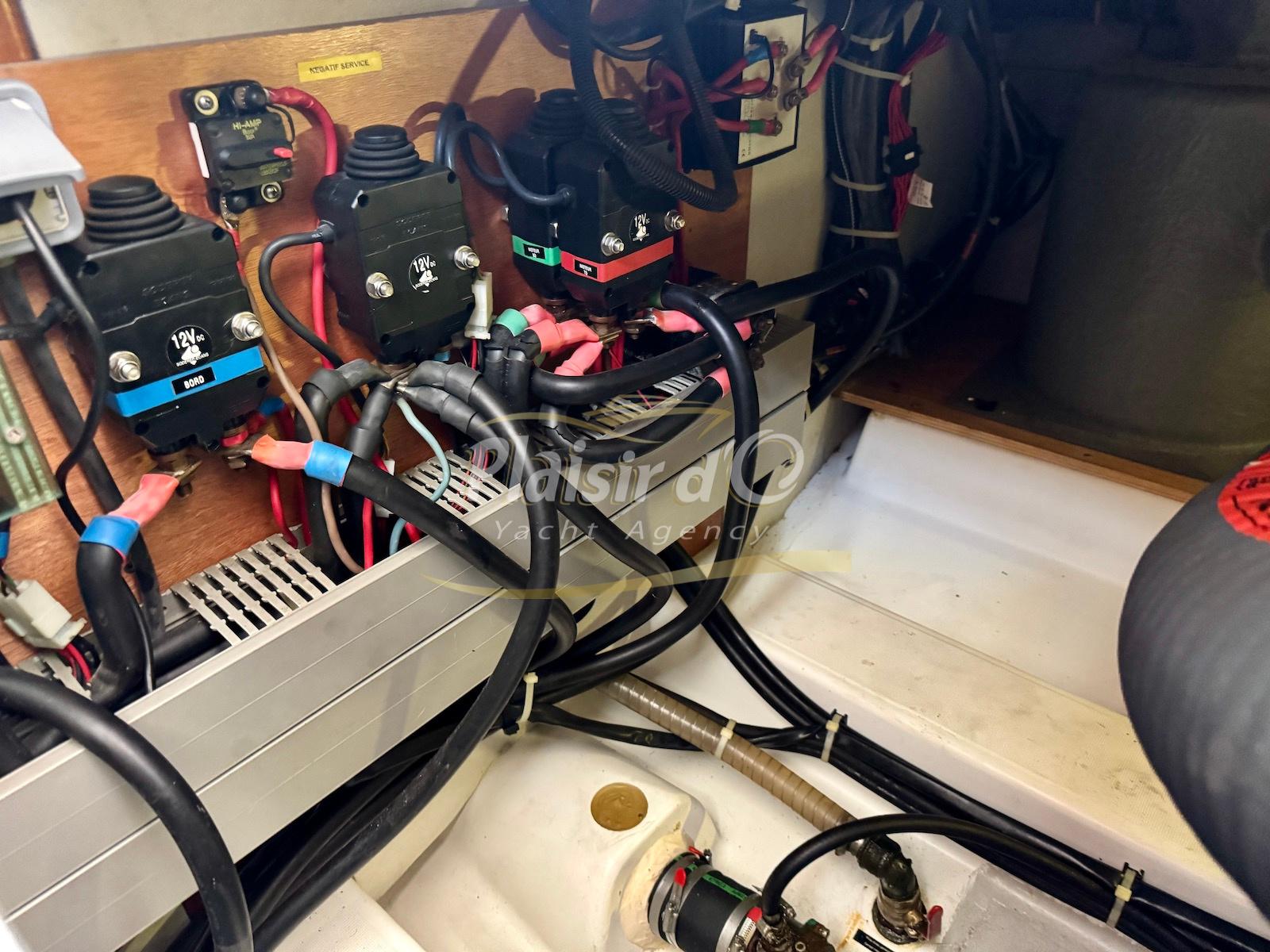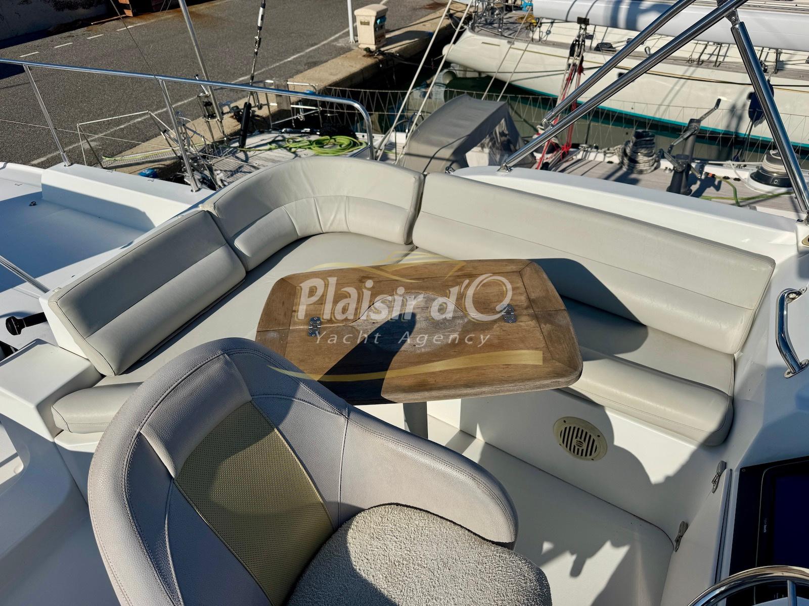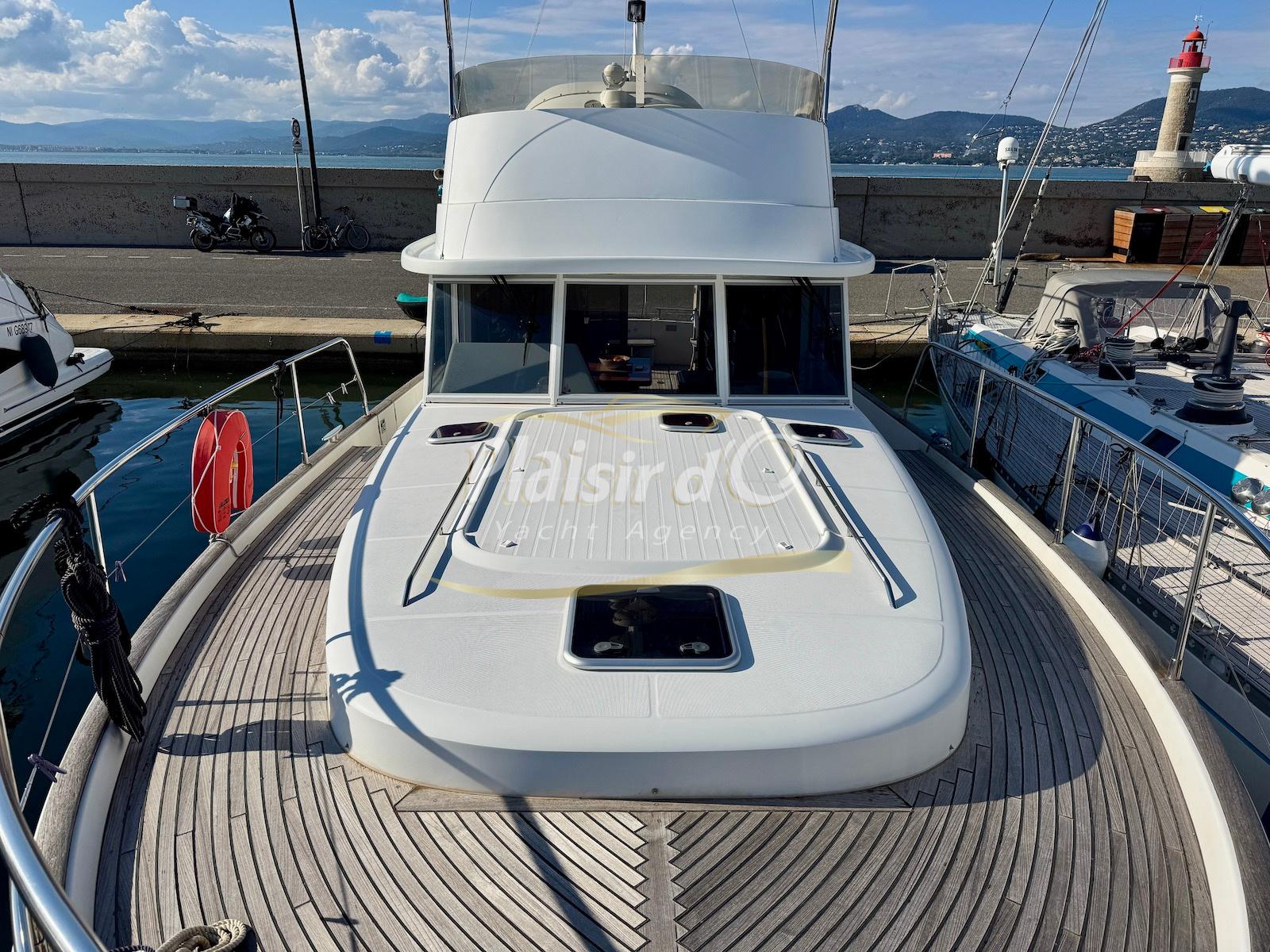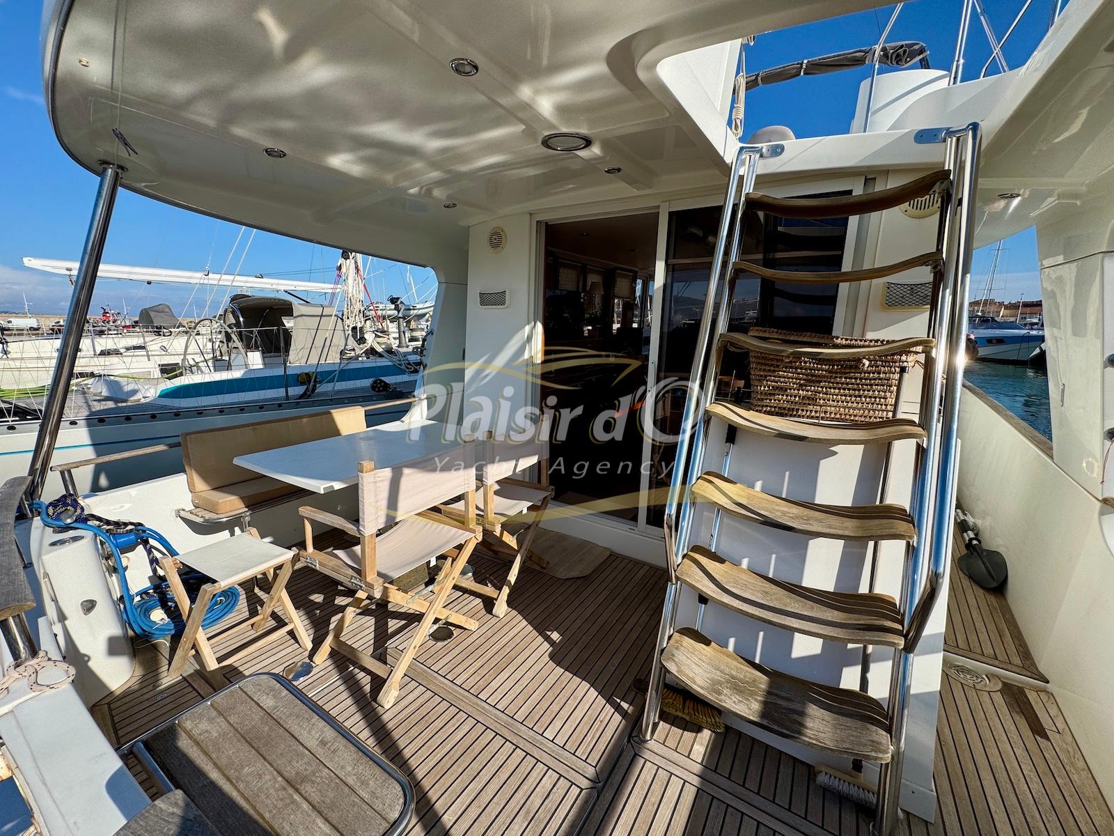FULL OPTIONS : Climatisation réversible, générateur, passerelle hydraulique, pilote automatique, cockpit teck, GPS/sondeur Raymarine, propulseur d’étrave, VHF, TV, 2 réfrigérateurs, plateforme de bain allongée.