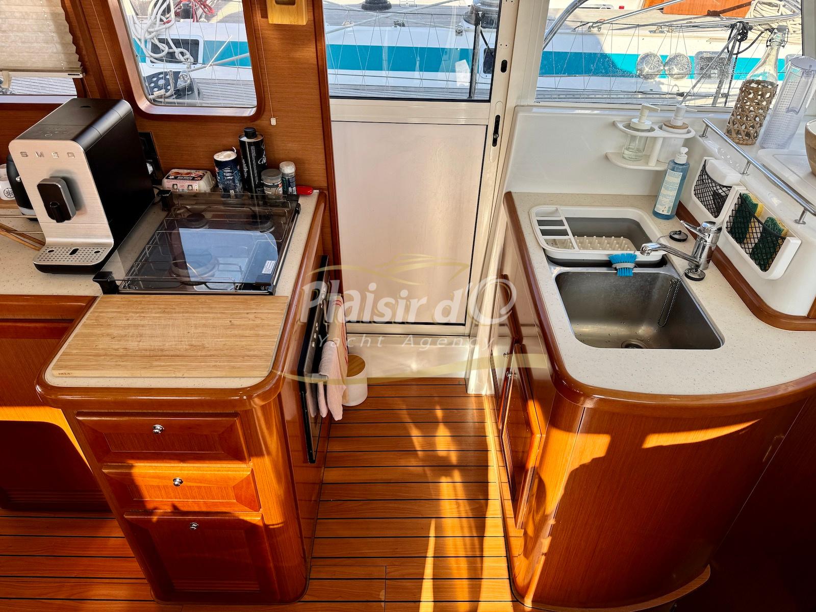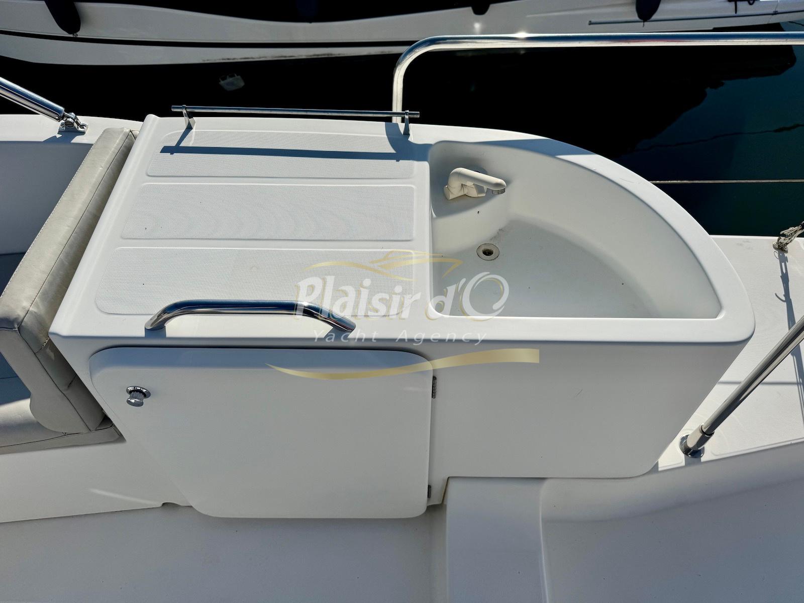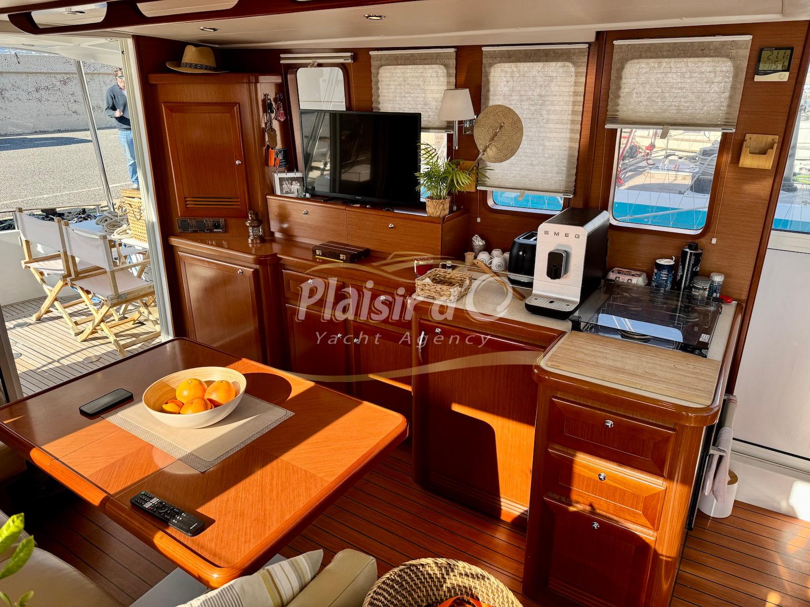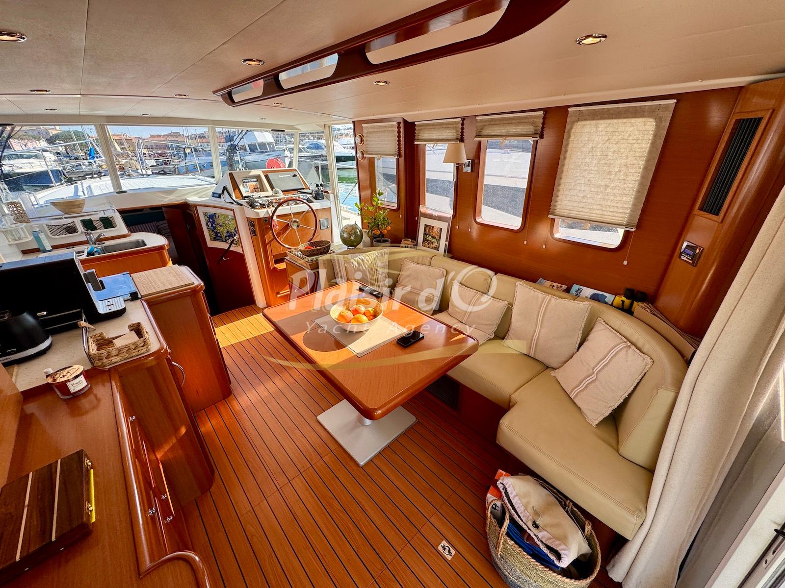 FULL OPTIONS : Climatisation réversible, générateur, passerelle hydraulique, pilote automatique, cockpit teck, GPS/sondeur Raymarine, propulseur d’étrave, VHF, TV, 2 réfrigérateurs, plateforme de bain allongée.