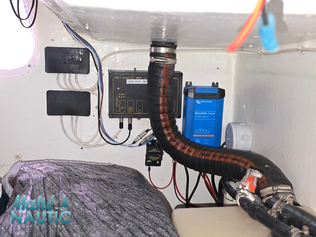Batteries : 1 moteur + 2 services Victron AGM 135Ah (les deux de services changées en 2024)