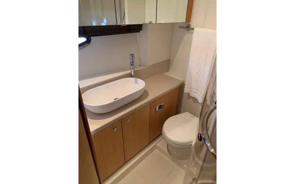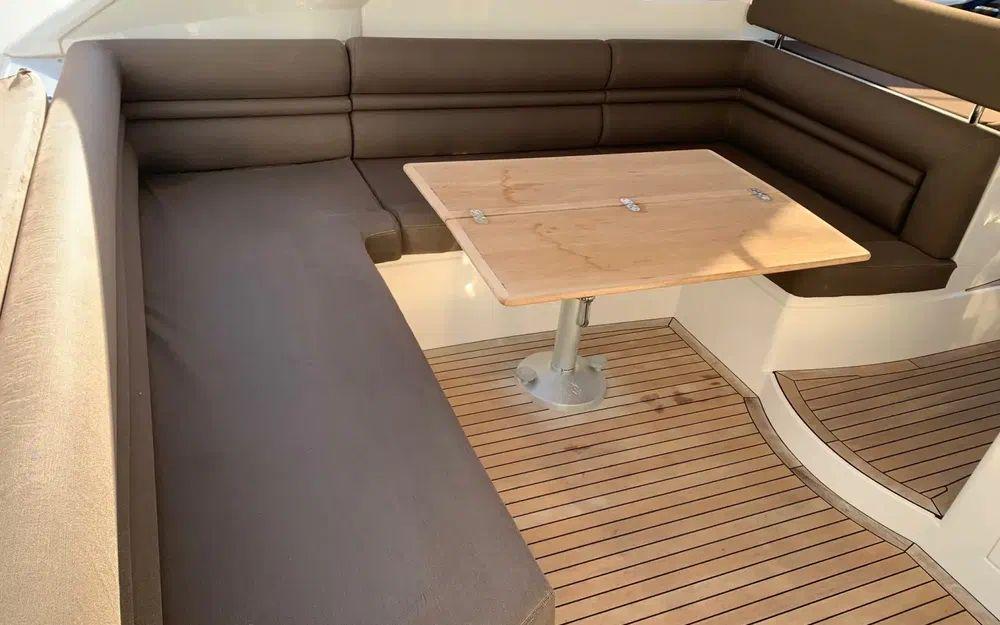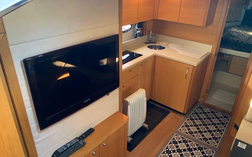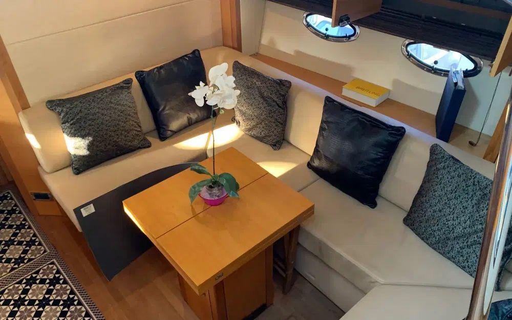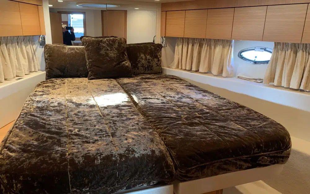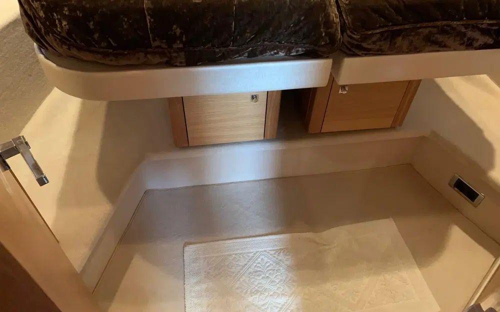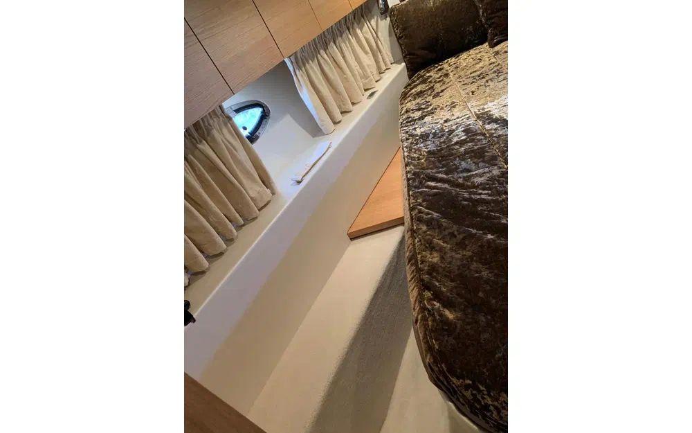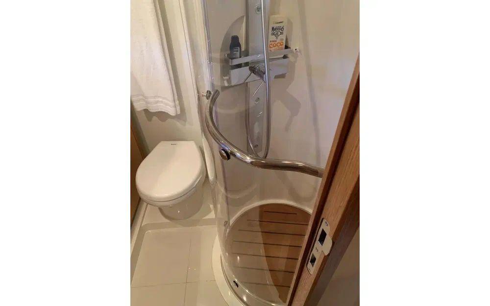 Ce bateau spacieux et bien équipé offre au propriétaire une cabine centrale pleine largeur avec salle de bain et une cabine d'invités polyvalente à l'avant.