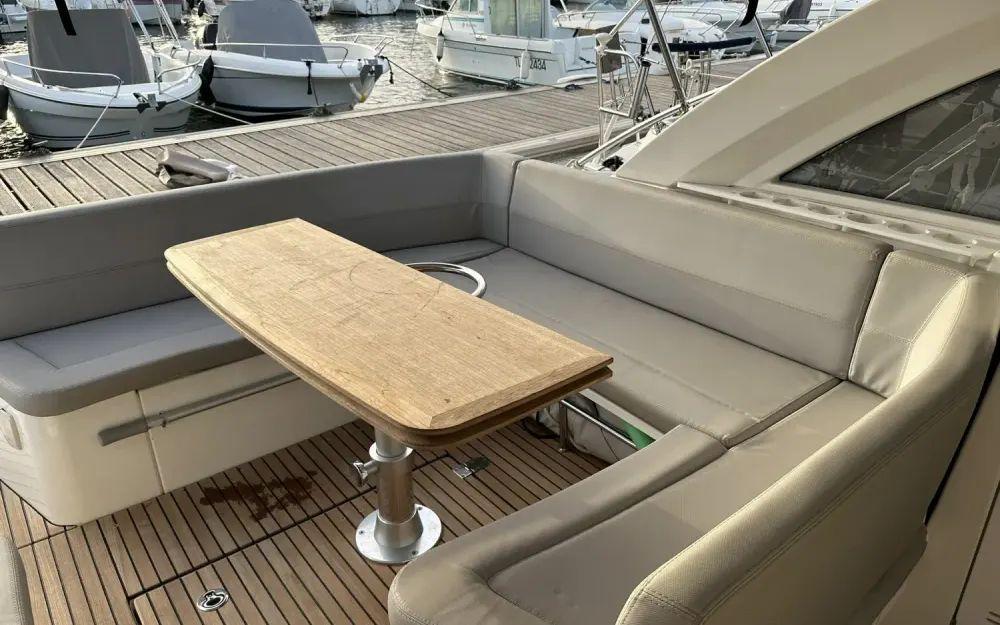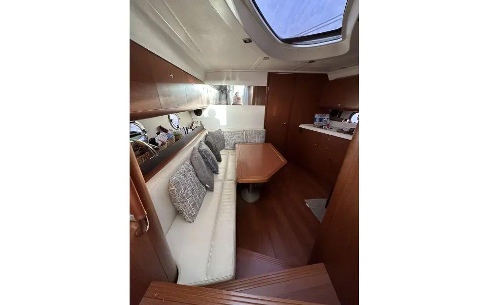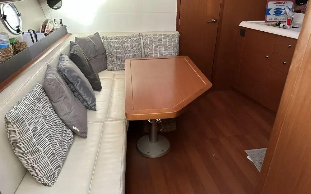 Le bateau est bien entretenu, les planchers sont dans un bel état, et les selleries sont très belles. Dans la partie cuisine, tout est en excellent état, de même que la salle d?eau. Tous les vaigrages sont en bon état, et aucune trace de décollement ni d'infiltration n'est observée. Ce GT38 est magnifique !