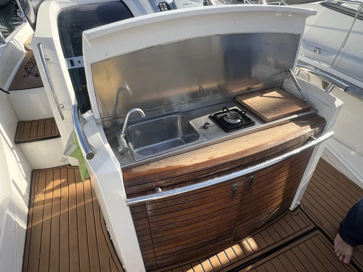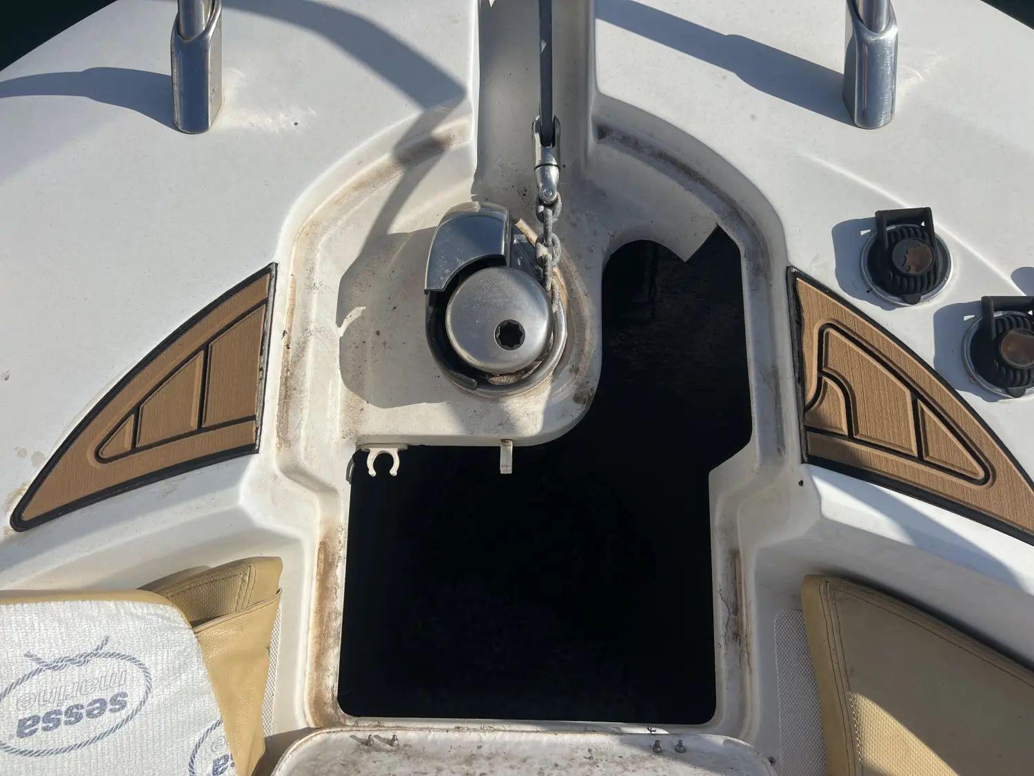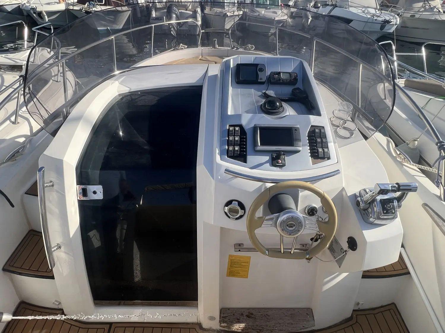 Le plancher en flexiteek a été réalisée en début de saison 2024. La réalisation est de bonne facture. Les selleries sont toutes d'origines à l'exception du dossier du bain de soleil avant. L'état de présentation de ces dernières est correct. Les tauds de console, de cockpit et le bimini sont en état d'usage.