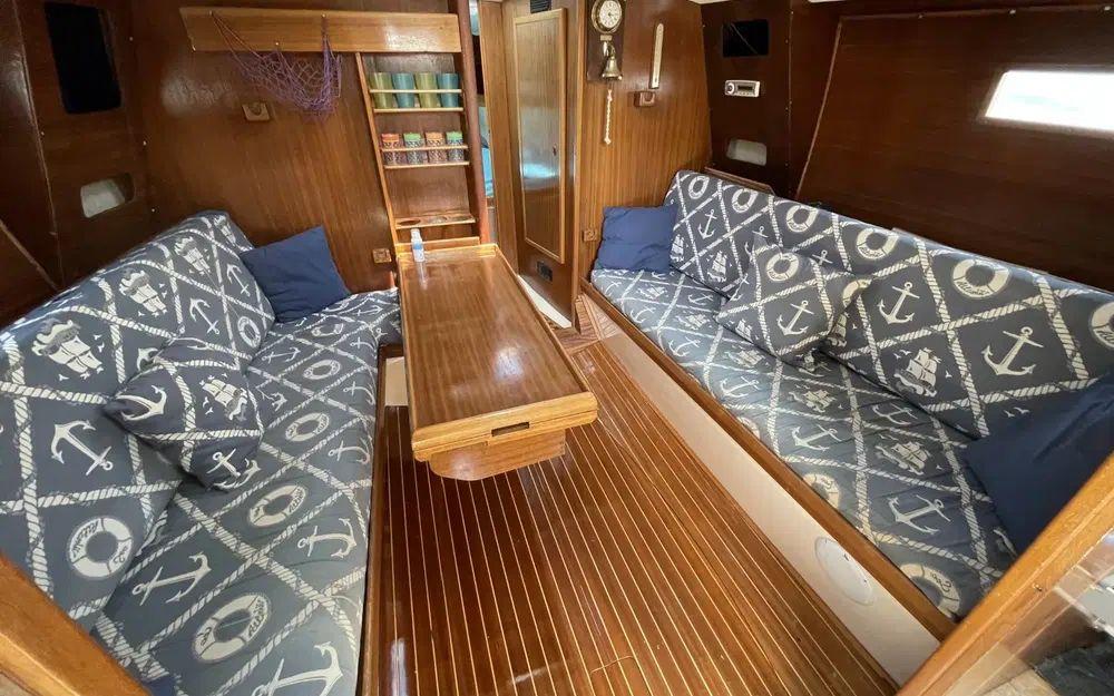 Les vaigrages sont dans un bel état, les boiseries et selleries également malgré quelques défauts mineur à quelques endroits du à son âge. Le bateau ce compose de 3 parties qui se ferment, permettant d'avoir finalement 3 parties cabines