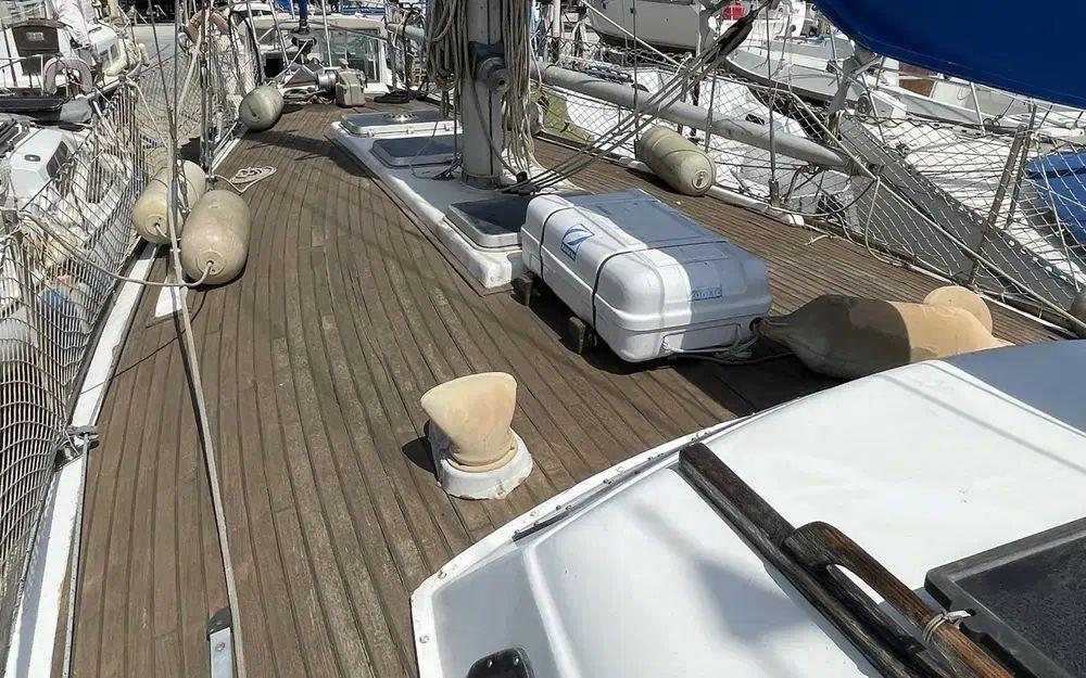 Ce voilier a été très bien entretenu, le teck à quelque défaut du à l'age du bateau, mais rien de dramatique, il s'agit d'un teck collé et non vissé, donc réparable facilement.