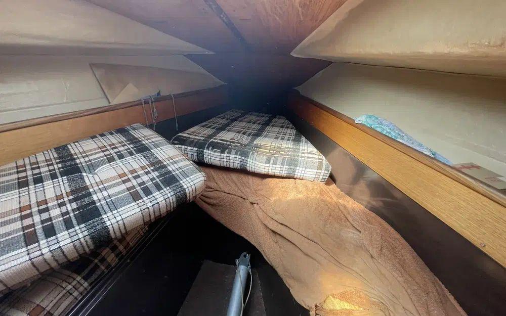 Le Bénéteau FIRST 27 peut accueillir 6 personnes dans ses 2 cabines avec 4 couchettes et dispose d'une salle de bain. Le confort à bord est renforcé par une hauteur sous barrot de 1,81 m et un réservoir d'eau douce de 90 l. Parmi les équipements : réfrigérateur, pilote automatique ST1000+, installation d'eau sous pression, et prise de quai.