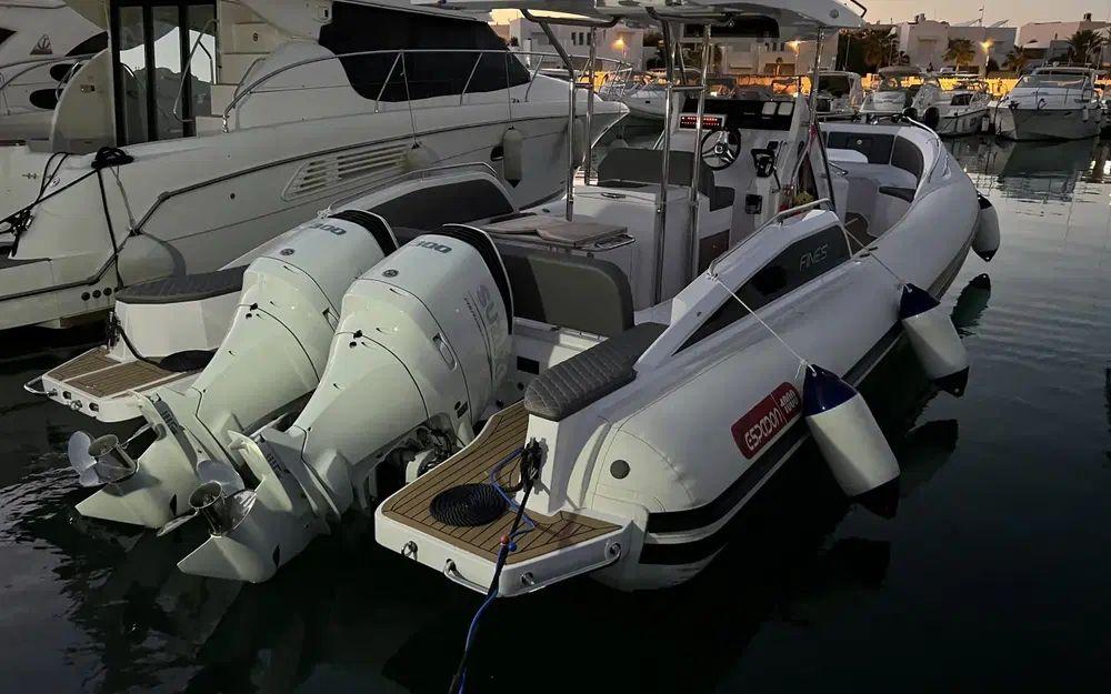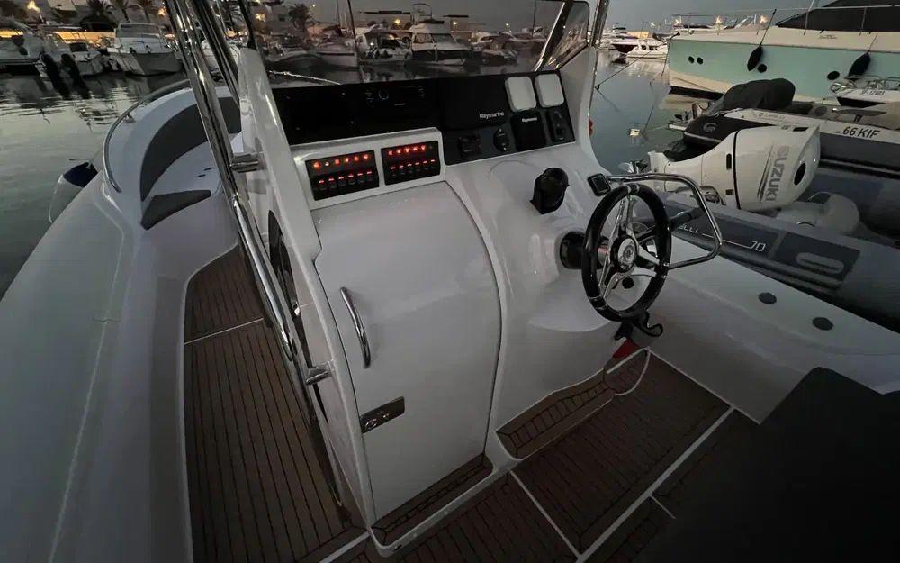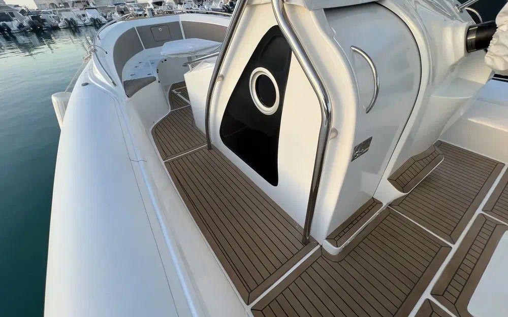 Le déjaugeage est rapide (moins de 5 secondes), la vitesse de pointe frise avec les 45 noeuds avec une bi-motorisation de 2x250cv. Ce comportement nerveux et sportif ne se fait pas au détriment des passagers puisque la carène en V profond conjuguée aux flotteurs permet de traverser les vagues en douceur et en parfait équilibre.