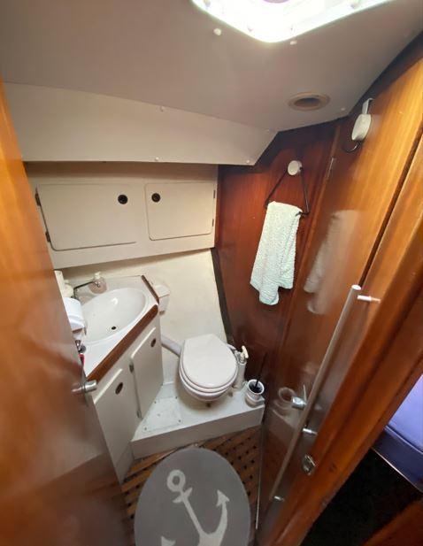 D’une longueur de 12.30 m, ce modèle 1983 est motorisé par VETUS (42 CV) .