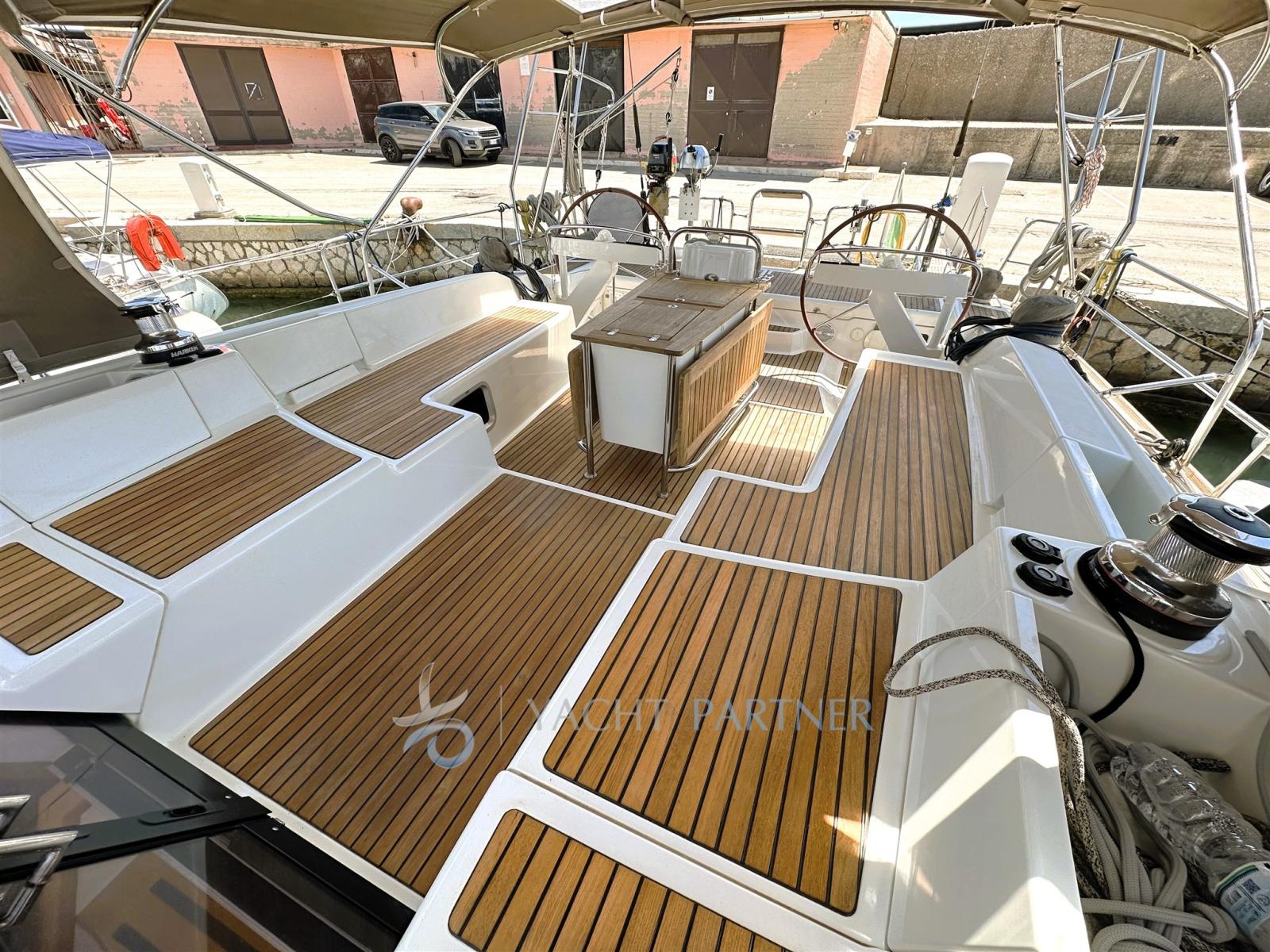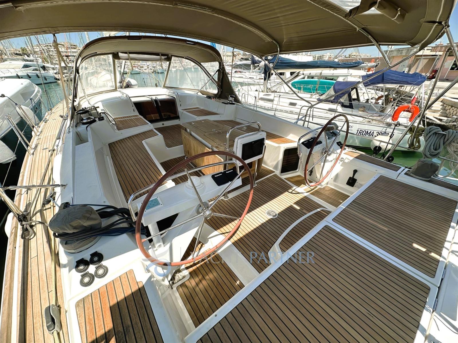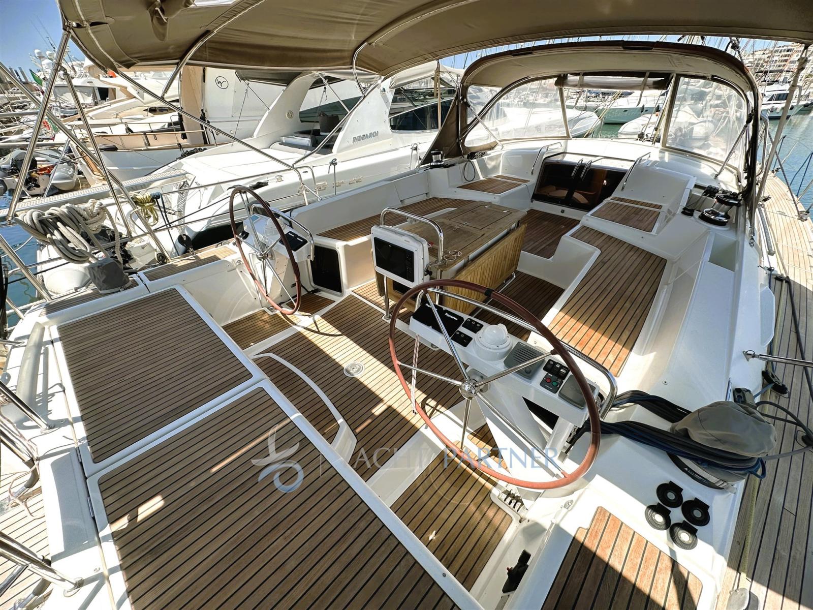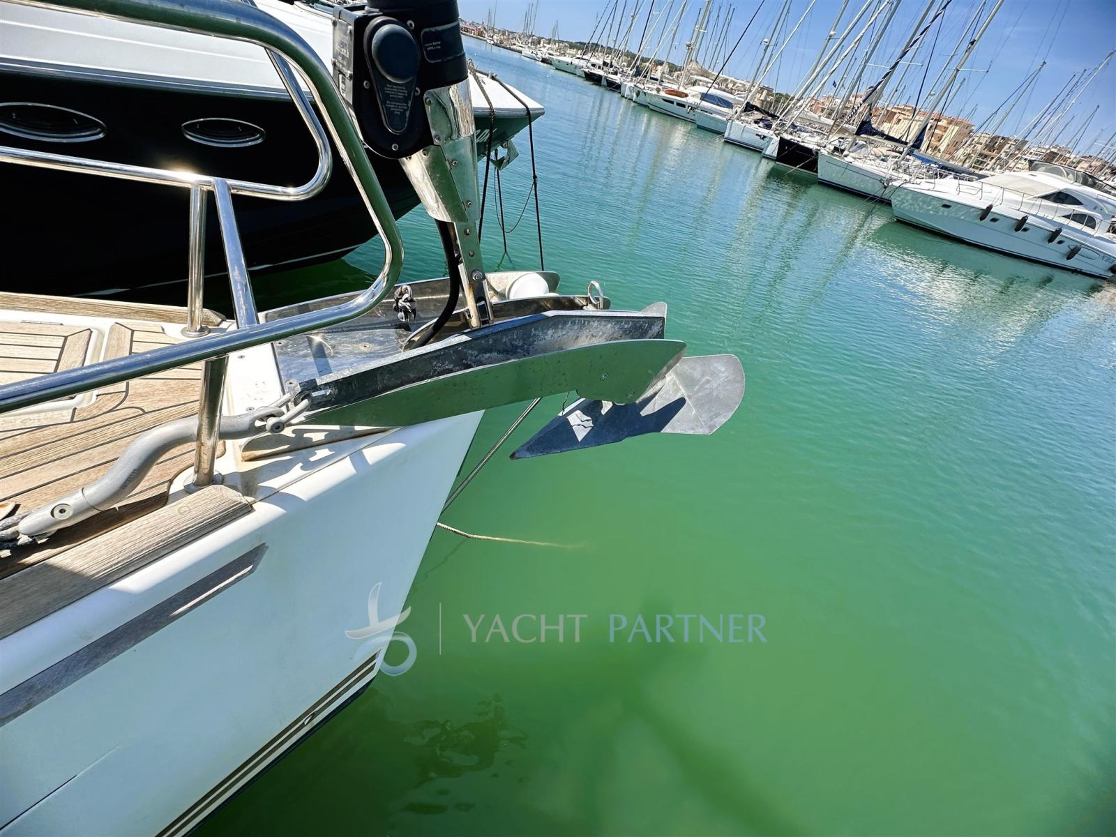 Mât classique laqué blanc, élégant et résistant, avec grand-voile sur enrouleur sur la bôme pour une gestion simple et sûre de la grand-voile ; Chariots Facnor de haute qualité, gage de fluidité et de fiabilité dans les manœuvres ; Lazy bag de couleur taupe, sobre et raffiné, parfaitement intégré au design du bateau ; Enrouleur électrique Bamar, pour un réglage rapide et sans effort du foc ; Pataras hydraulique, idéal pour optimiser la tension du mât et améliorer les performances de navigation ; Retour de l’écoute de grand-voile sur les treuils supplémentaires, pour une manipulation facile même dans des conditions exigeantes ; Manœuvres dédiées au spi asymétrique, conçu pour la navigation au portant et performant ; 6 treuils électriques, répartis stratégiquement pour assurer un maximum de contrôle et de confort pendant la navigation.