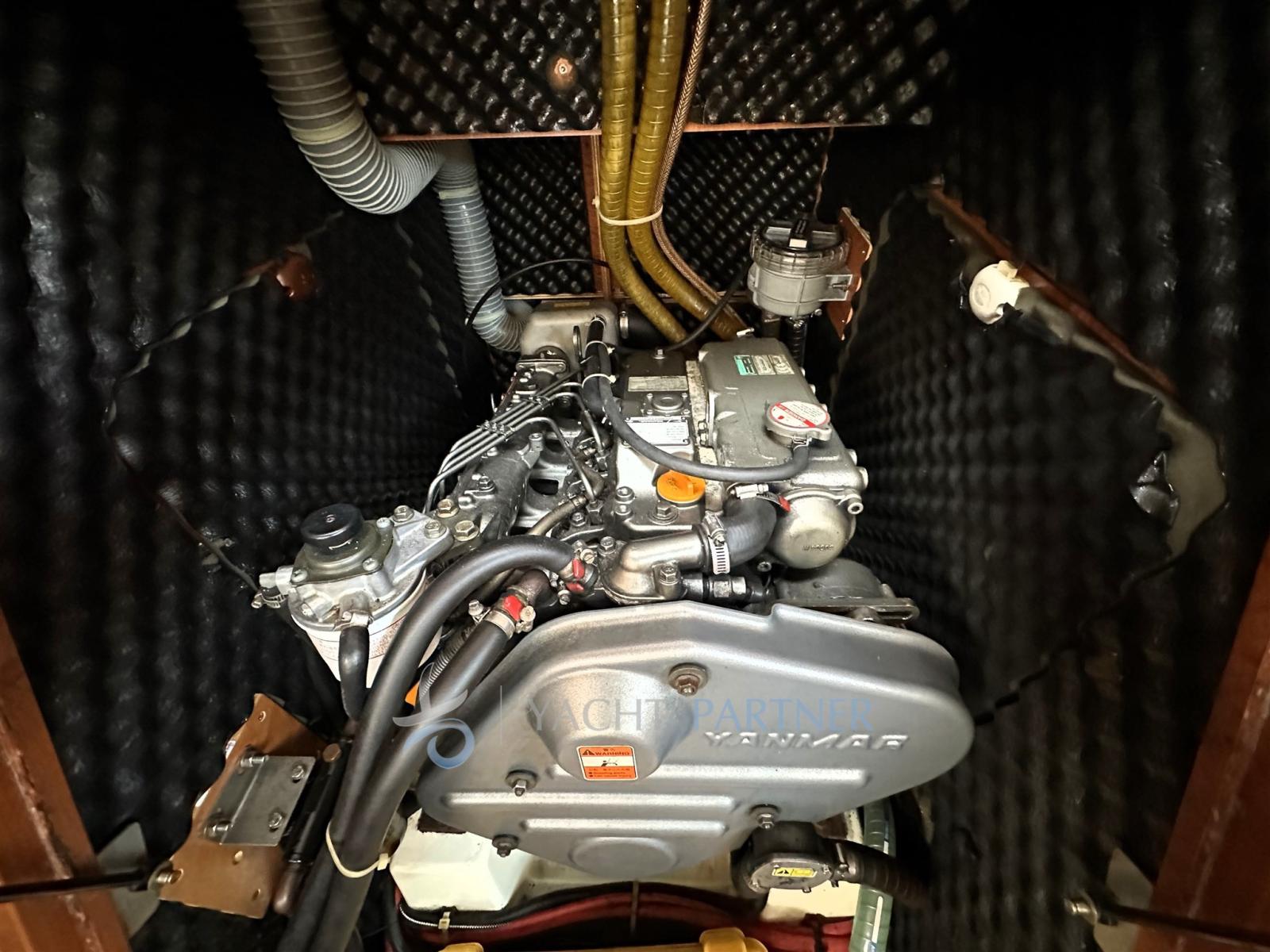 Longueur hors tout : 13,10 m | Largeur : 4,12 m | Tirant d’eau : 1,65 m ; Motorisation : Yanmar 4JH4AE – 54 CV ; Heures moteur : 1 750 h ;