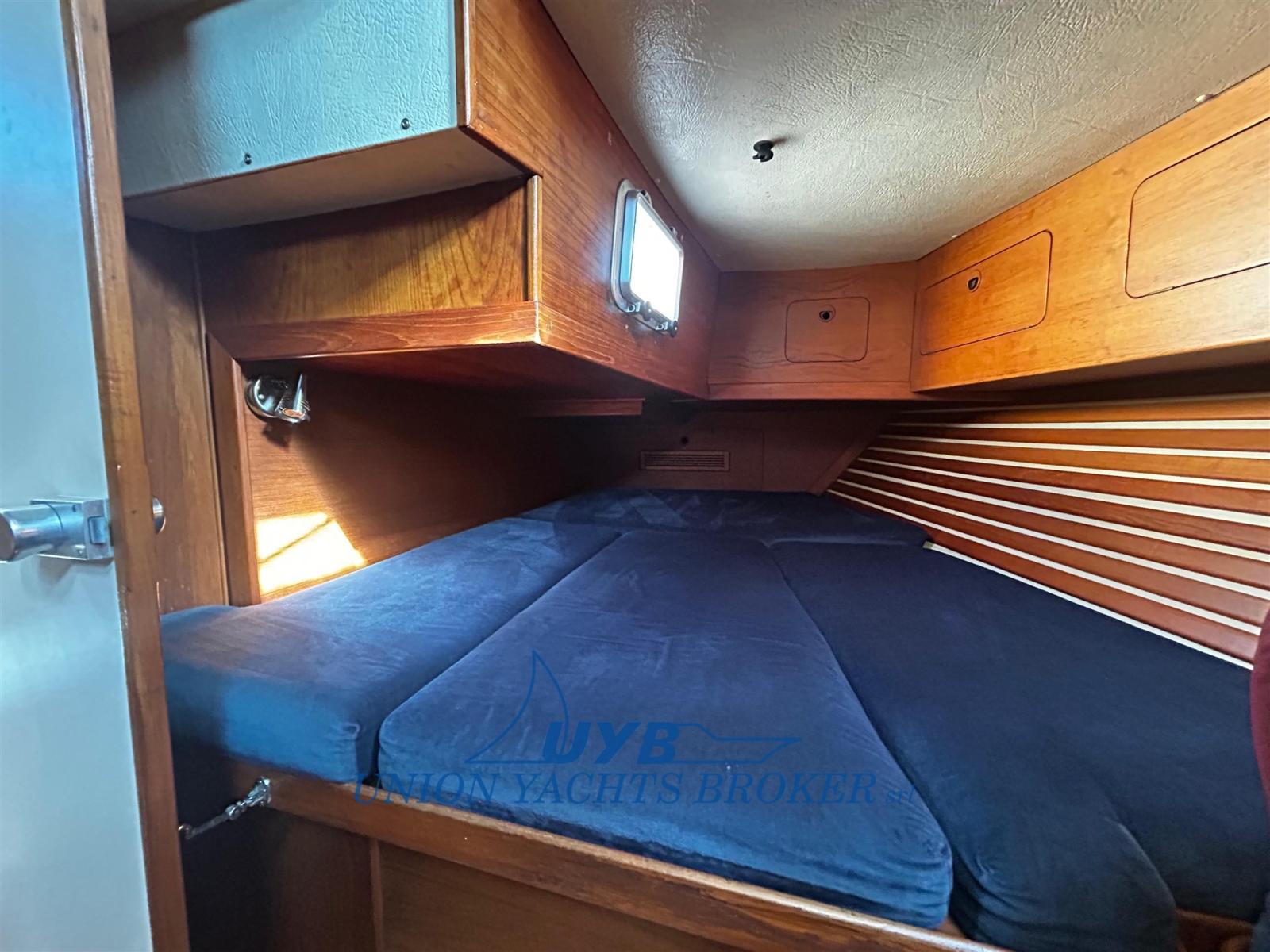 Améliorations : douche extérieure (eau chaude et froide), toilettes électriques, pilote automatique, système audio, chargement USB dans toutes les pièces, affichage du niveau du réservoir d’eau, réservoir d’eau chaude, nouveau treuil (2022) et électricité (2024), nouvelle batterie de service, nouvelles pompes de cale et nouvel affichage du carburant pour le réservoir de 96L.
