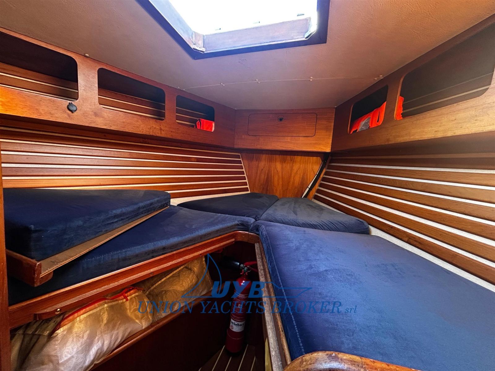 Excellentes capacités de remontée au près, gouvernail bien équilibré, idéal pour la course et la croisière au long cours. Construction robuste. Coque solide en fibre de verre, conçue pour la navigation hauturière.