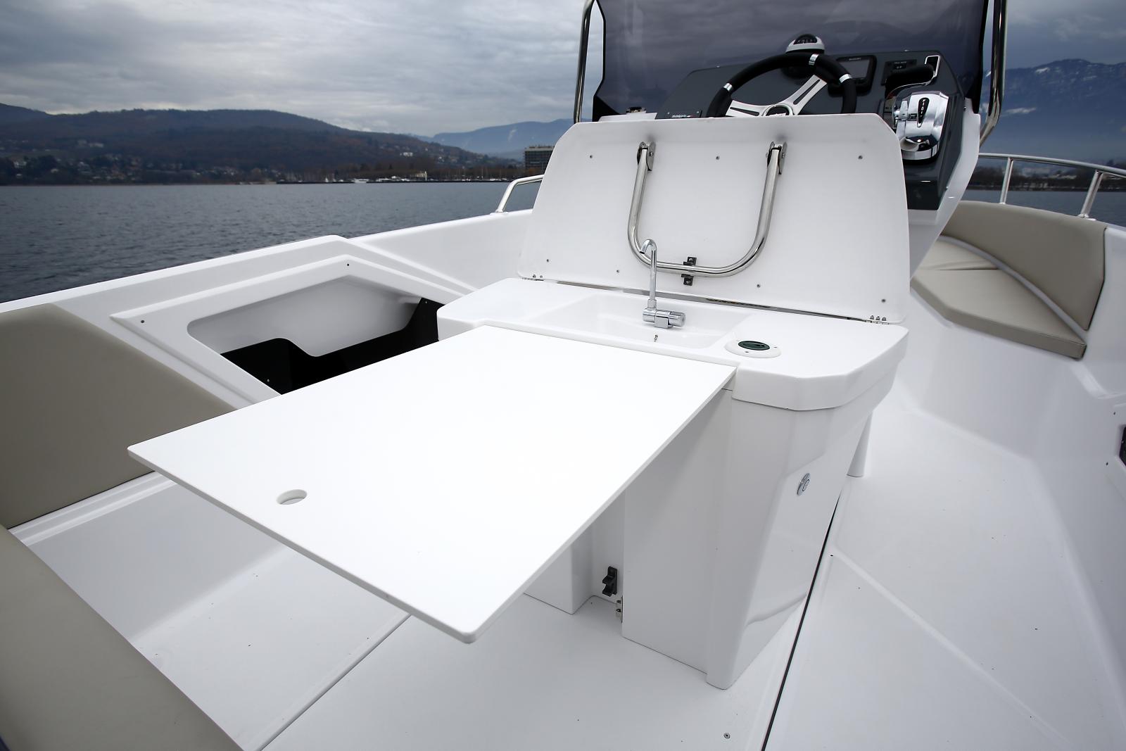 Motorisation : Moteur hors-bord puissant, offrant des performances sportives et une conduite fluide.