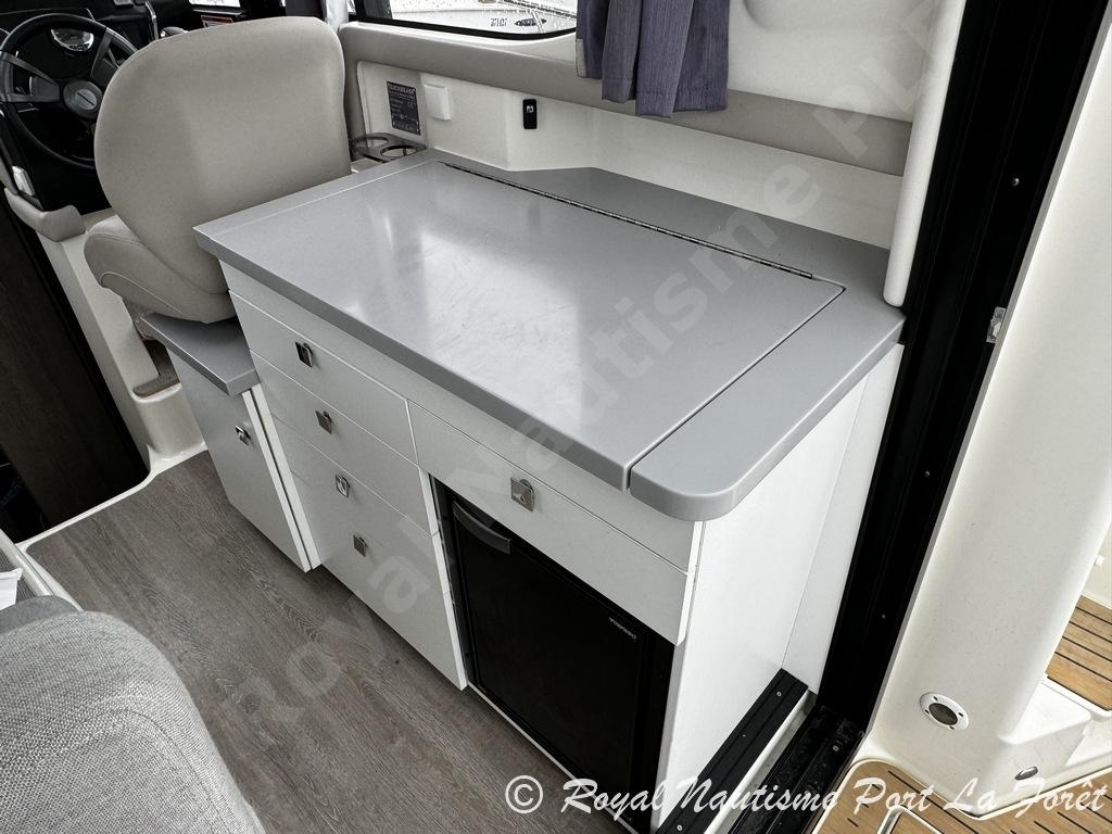 The Quicksilver Activ 905 Week End OB is a boat designed for family coastal cruising. It has a sporty silhouette and optimised interior volume. Beautiful 1st hand from 2021 in perfect condition, well maintained. (Smart edition, NAvigation Pack, Electronics Pack, heating, sunroof...)