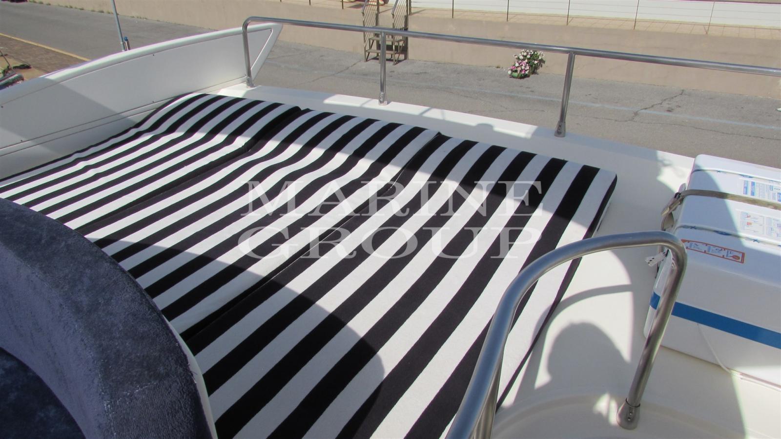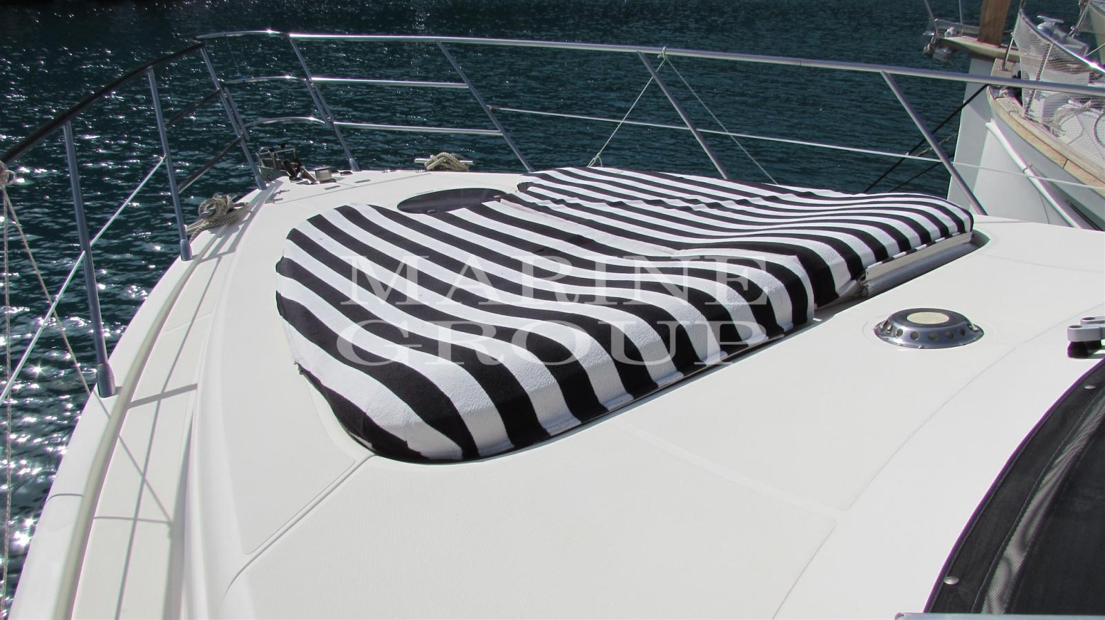 Haut-parleurs, Antenne TV satellite, Climatisation, Bimini (Fly), Chaudière, Climatisation réversible, Congélateur, Coussins complets, Coussins de poupe, Coussins d’étrave, Coussins de flybridge, Coussins de cockpit, Réfrigérateur externe (Fly), Réfrigérateur interne, Système TV, Micro-ondes, Stores, Plaque électrique, Prises internes 12v, Prises internes 220v, Radio AM/FM, Réservoir d’eaux noires, Stéréo, Housse de console, Auvent, 2 TV, VHS, Moustiquaires, Alarme moteur, Antenne radar, Autoclave, Chargeur de batterie, Commande électronique du moteur, Compteur de chaîne, Odomètre, Douche de pont, Propulseur d’étrave, Phare réglable, Volets hydrauliques, Lavage de chaîne, Passerelle, Plateforme, Porte d’entrée, Cockpit en teck, Prise de quai 220V, Prise d’eau de quai, Arceau de sécurité, Guindeau électrique, Echelle de bain, Sièges annexe, Table de cockpit, Trompette, Treuil d’amarrage 2 Poupe