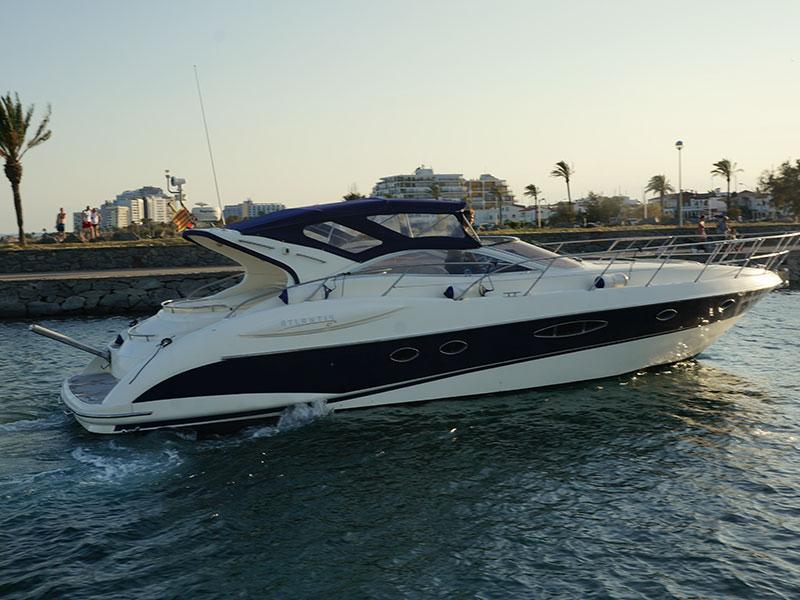 Belles lignes sportives. Prêt à naviguer, vie à bord très confortable. Electronique complète, générateur et passerelle hydraulique. Kit complet de tauds: taud de camping, bimini et taud micro-perforée. Deux cabines doubles avec salle de bain. Salon intérieur transformable en lit. Air conditionné et chauffage. Taxe du pavillon espagnol payé.