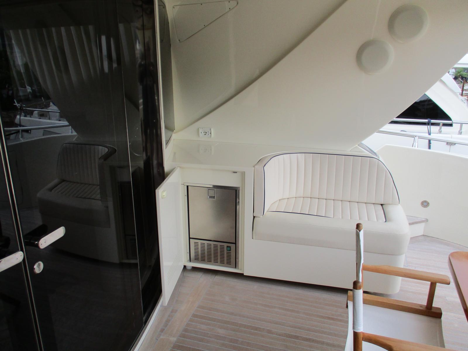 Espaces extérieurs généreux : Le yacht propose de vastes espaces extérieurs, comprenant un grand solarium avant, un salon extérieur avec vue imprenable, et un flybridge offrant une terrasse en plein air avec un coin bar pour des moments de détente.