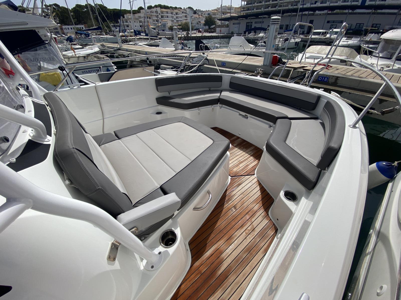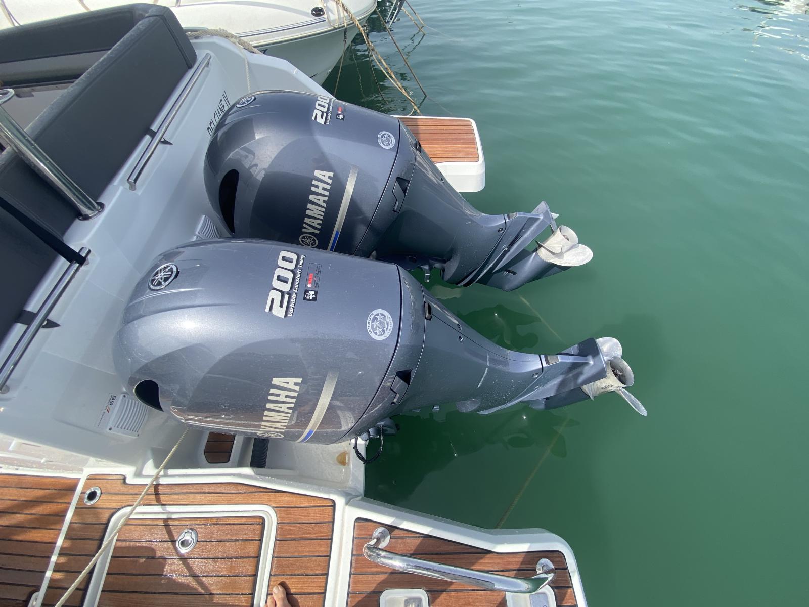 Le remplaçant du 8.5 CC ne manque pas de prestance avec sa coque noire et son T-top personnalisé. Sous des allures de « fishing américain », cet open n’en demeure pas moins un bateau familial très bien pensé pour la sortie à la journée, voire pour la mini-croisière. C’est le moment de profiter de cette supber occasion pour l’été. Ce cap Camarat 9.0 CC dans un état proche du neuf , avec ses 2 moteurs Yamaha de 200 CV n’a que 125h de marche, une vitesse de croisière de 24 noeuds et une vitesse maximum de 43 noeuds, des sensations garantie.