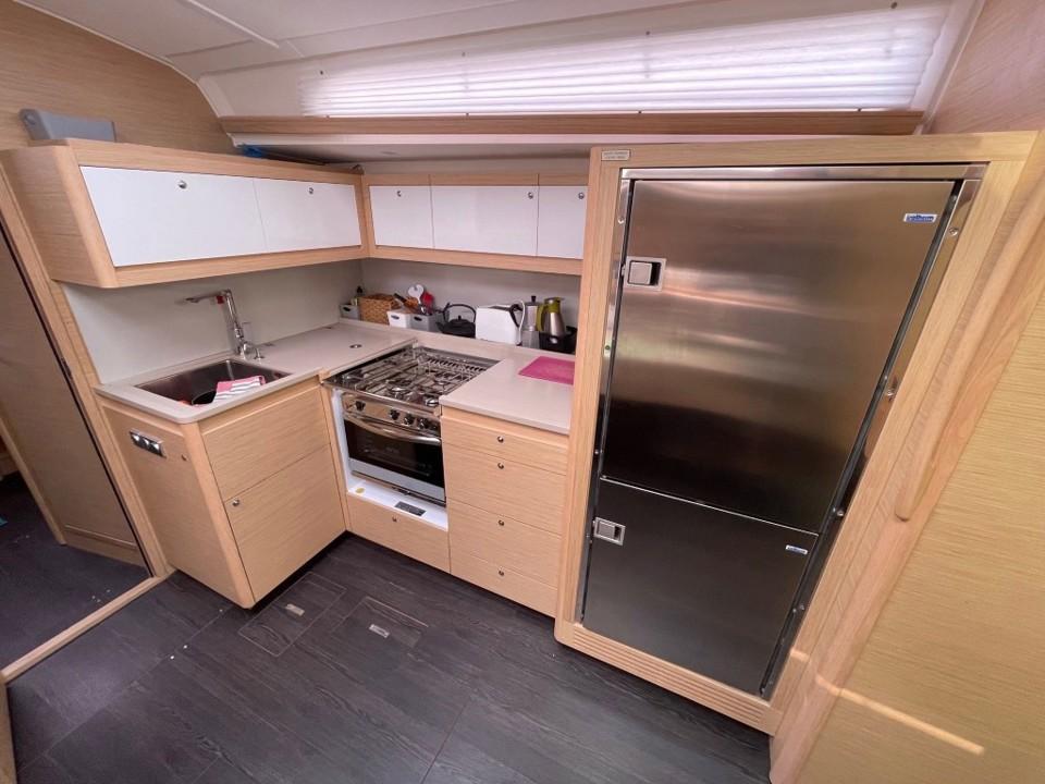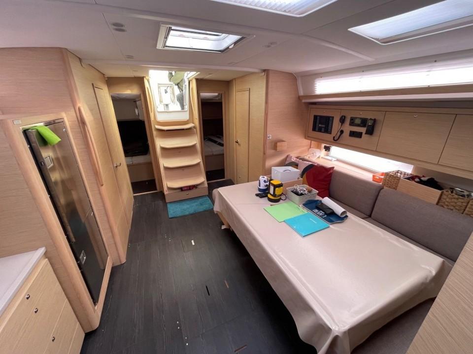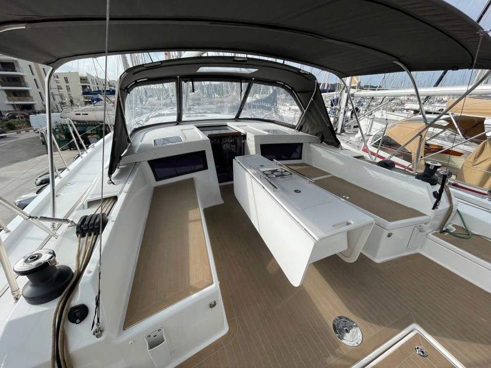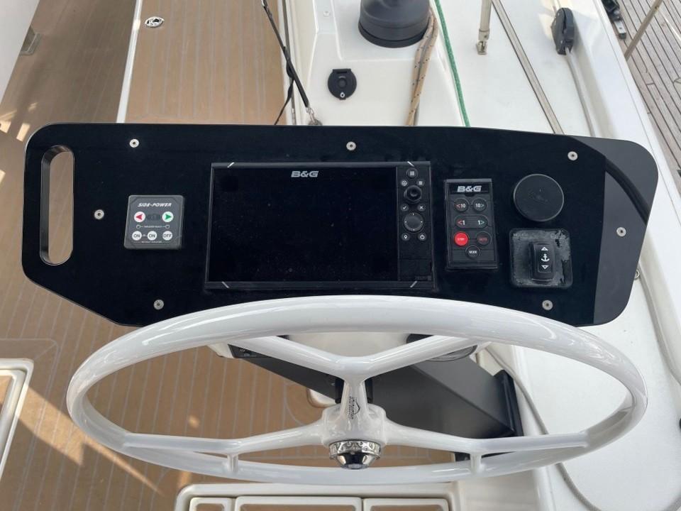Performances et navigation : Grâce à un plan de voilure optimisé et une carène performante, le Dufour 470 offre une navigation plaisante et réactive, même par petit temps. Son cockpit spacieux, avec ses doubles barres à roue et ses équipements ergonomiques, facilite les manœuvres, même en équipage réduit. Il est configuré dans la version "Easy", pour une navigation simplifiée, idéale pour les plaisanciers recherchant le confort avant tout.