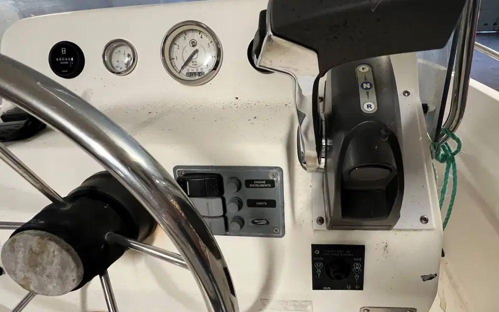 Compte-tour, indicateur de trim et horamètre sur Console, Volant INOX. Batterie récente 60Ah