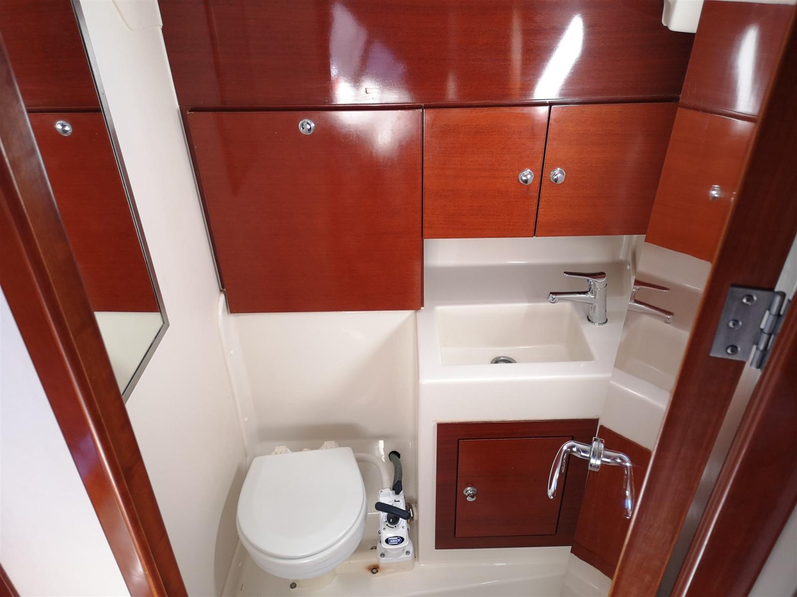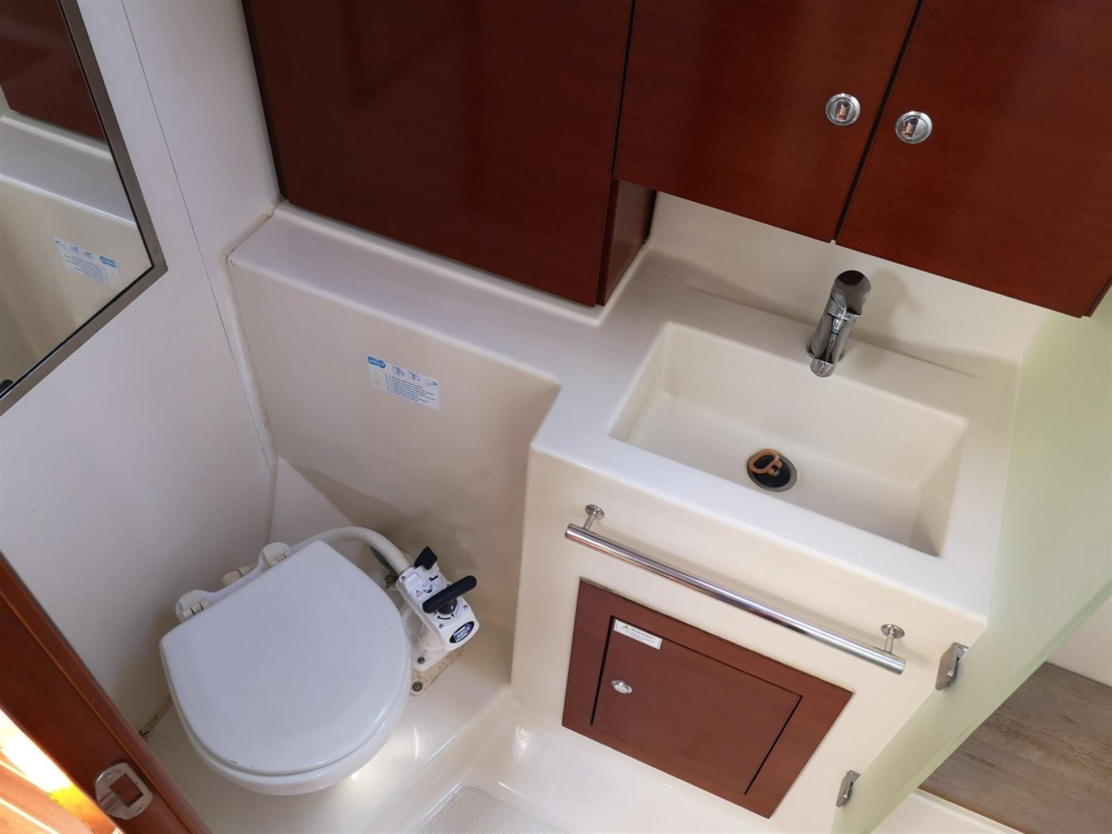 Cabine principale avec salle de bain privée avec lavabo et toilettes manuelles