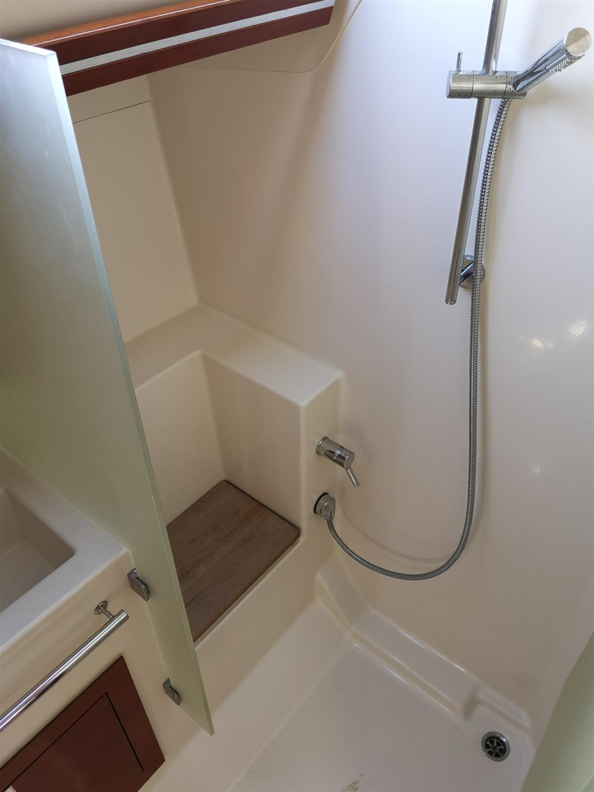 Eau sous pression, 2 Batteries, Douche de cockpit, Pompe de cale manuelle, Echelle de bain, 4 Winch.