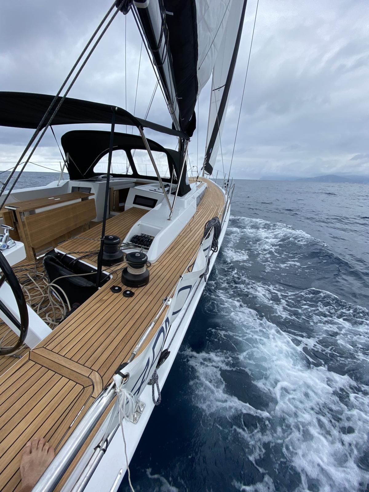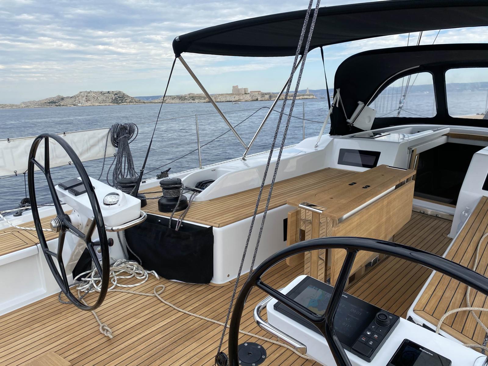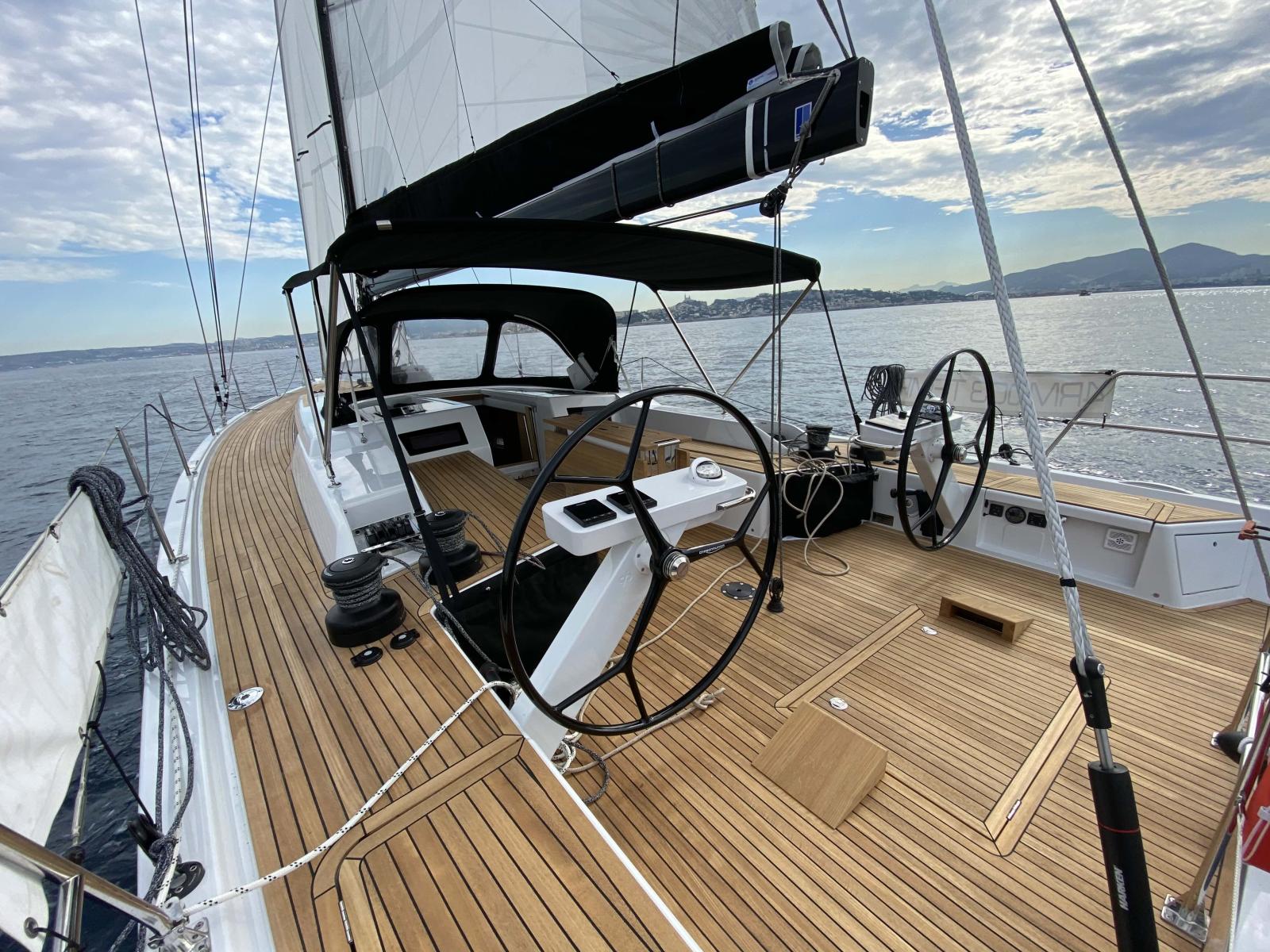 | Équipement de pont | 2 winches Harken Performa 60.2 STP, 2 winches électriques Harken Performa 60.2 STEPH, point fixe fond de cockpit pour écoute de grand-voile, rail et chariot de foc auto-vireur - Equipement de pont pour gennaker avec delfinière carbone, 2 poulies Harken simple - 2 manivelles de winches Harken |