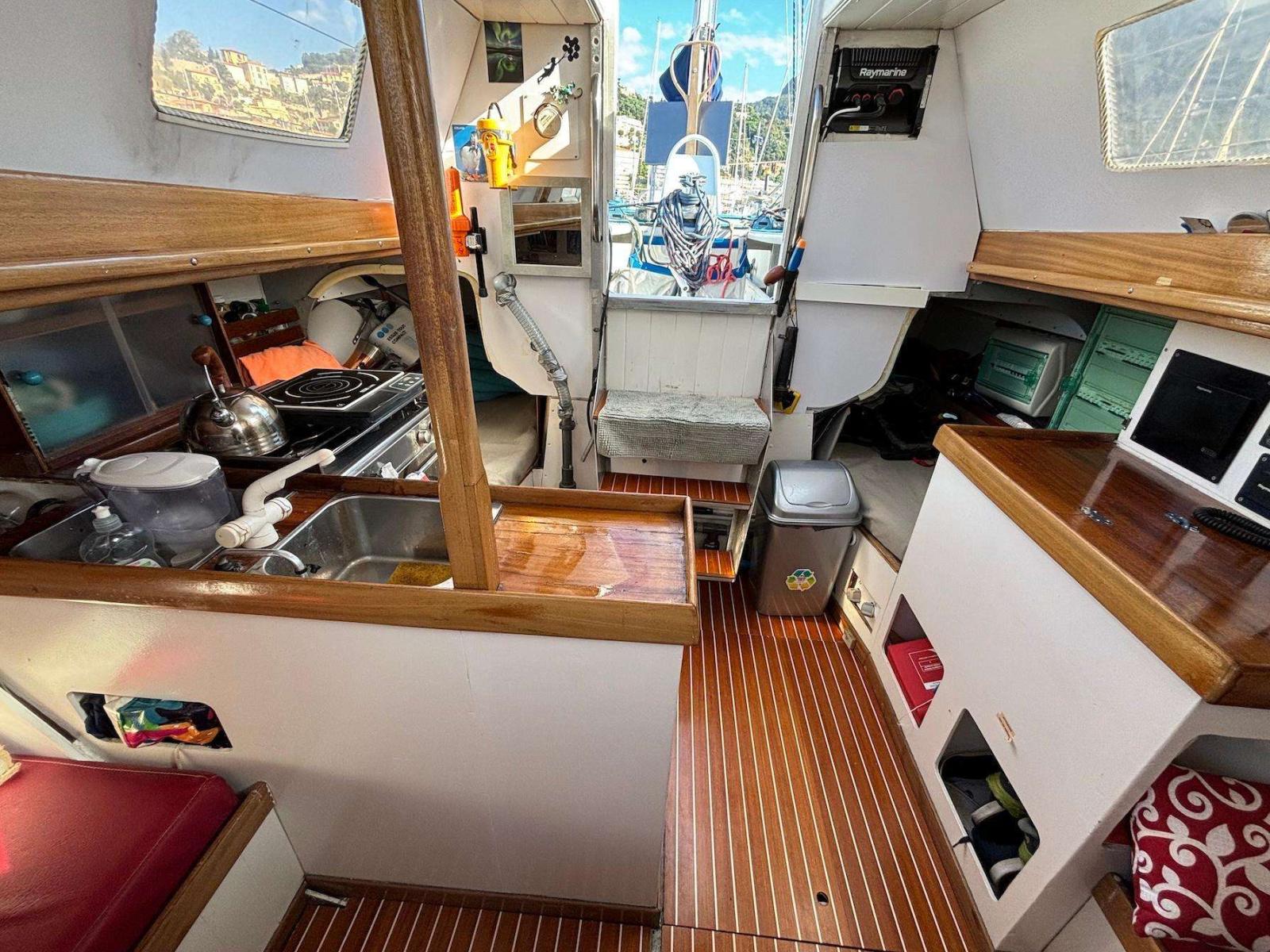 Eclipse 60’ Aluminium (1992) – Sister Ship du "36.15 MET" de J.-L. Van Den HeedePièce unique de l’architecture navale, ce voilier en aluminium de 18,24 m a été conçu pour affronter les mers du globe. Modèle Eclipse 60’, dessiné par Philippe Harlé et construit par Garcia, il est le Sister Ship du célèbre "36.15 MET" de Jean-Luc Van Den Heede, engagé sur le Vendée Globe 1992, et a vu Vincent Riou réaliser à son bord sa toute première transatlantique.Pensé pour la grande croisière et les navigations engagées, ce voilier robuste et marin affiche des caractéristiques techniques remarquables :Caractéristiques principalesConstructeur : GarciaAnnée : 1992Architecte : Philippe HarléModèle : Eclipse 60’Matériau : AluminiumLongueur HT : 18,24 mLargeur : 3,44 mTirant d’eau : 2,80 mDéplacement : 12,4 tQuille : droite, lest plomb (4,25 t au total)Safran : suspendu, mèche pleine alu Ø 100 mmCompartimentage : 3 cloisons étanches, 4 zones indépendantesCoque : épaisseurs de 5 à 8 mm, métallurgie vérifiée (2013)Motorisation : Nanni N4-50 – 50 cv – 240 h – entretien proSail Drive remplacé en 2024Réservoir diesel 140 LPont et accastillage haut de gammeMâts : 2 mâts aluminium (Sparcraft et Seldén), gréement dormant Dyform (2007)Bôme avec Lazy BagWinches Andersen (jusqu’à 66 ST)Rail et accastillage Harken / Frederiksen / Antal6 taquets soudés, balcon inox, chandeliers renforcésGuindeau électriqueJeu de voiles complet et performantGrand-voile Full Batten Hydranet 80 m² (2007) – Excellent étatSolent Hydranet sur enrouleur Profurl 65 m² (2008)Inter sur bas-étai à mousquetonsGennaker 100 m² sur emmagasineur ProfurlSpi symétrique et asymétriqueArtimon Full Batten + tangonsAménagements et confortCarré spacieux convertible (4 couchages possibles)Cabine avant lit double avec rangement2 couchettes cercueil arrièreCabine toilette avec WC marinCuisine équipée : réchaud 2 feux + four, glacière électrique 90 L, 2 x 120 L d’eau douceChauffe-eau moteur/220VTableaux électriques 12V et 220V neufs (2024)Électronique & ÉnergieDouble centrale Raymarine, radar, GPS RS70C, PC durciPilote automatiqueVHF fixe et portableFeux de navigation LEDChargeur Victron Energy 30AAlternateur 100ASécurité hauturière complète et à jourRadeau Sea Safe 10 places révisé (2016)Balise de détresseArmement semi-hauturier 8 personnesExtincteurs, feux, bouées, mouillages (CQR + aluminium)Entretien et travaux récentsSail Drive neuf (2024)Tableaux et réseaux électriques refaits (2024)Sécurité hauturière complète et réviséeEntretien moteur pro Nanni, faible nombre d’heuresPourquoi choisir ce voilier ?Un pedigree unique dans l’histoire de la course au largeRobustesse incomparable de l’aluminium GarciaPrêt pour le grand large avec un équipement complet et entretenuPolyvalent et évolutif, idéal pour projet tour du monde, expéditions ou charter hauturier Visible sur rendez-vous