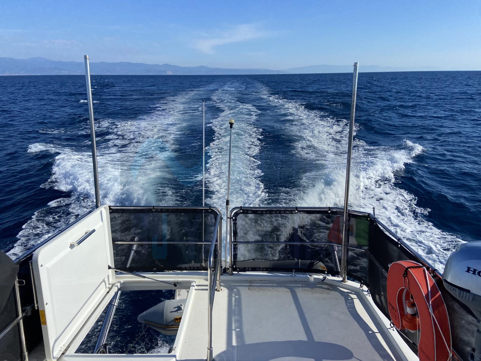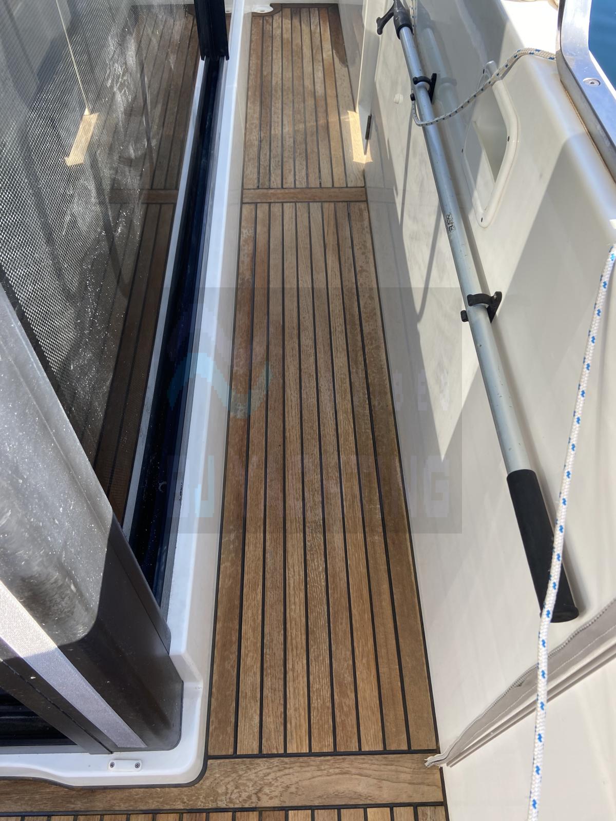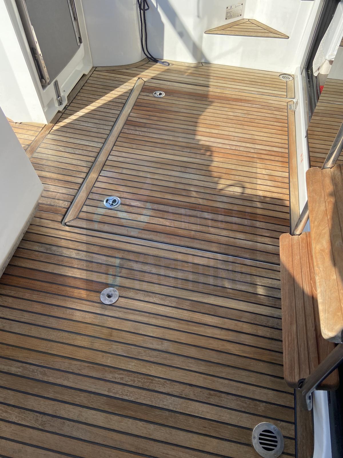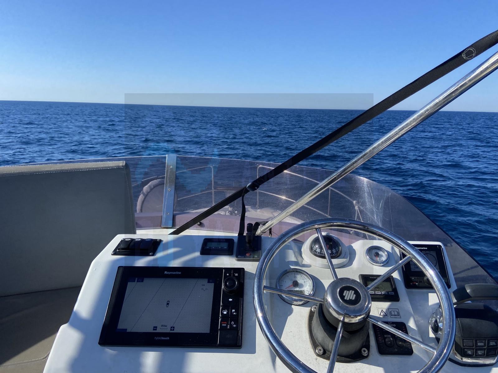 Coussins de fly neufs 2024, générateur, chauffage Webasto, guindeau d'ancre sans fil 2024, connexion 220V, chargeur de batteries, système d'extinction d’incendie, toilettes électriques, eau sous pression et eau chaude, bimini-top, cockpit en teck avec table, échelle de bain, douche de pont, télévision, radio, haut-parleurs de cockpit.