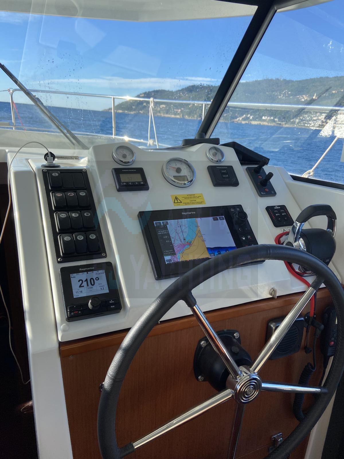 Électronique Raymarine : GPS, pilote automatique, sondeur, VHF, radar neuf 2024, traceur de cartes, AIS, propulseurs d’étrave et de poupe, flaps.