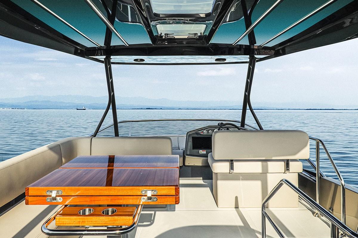Avec la direction artistique signée Christian Grande, ce flybridge de près de 16 mètres se distingue par son style linéaire et contemporain parfait pour souligner son excellent contenu technologique.