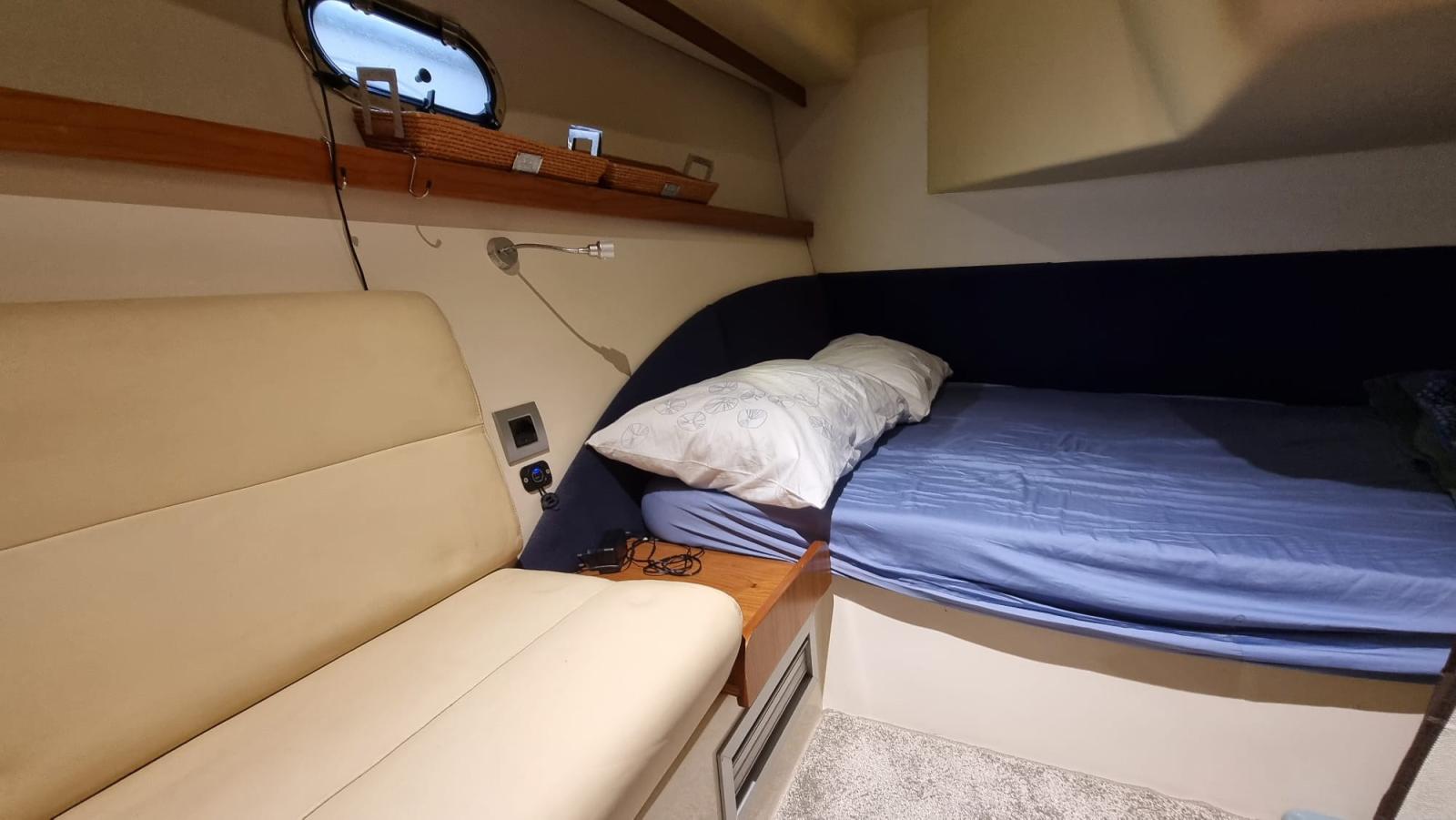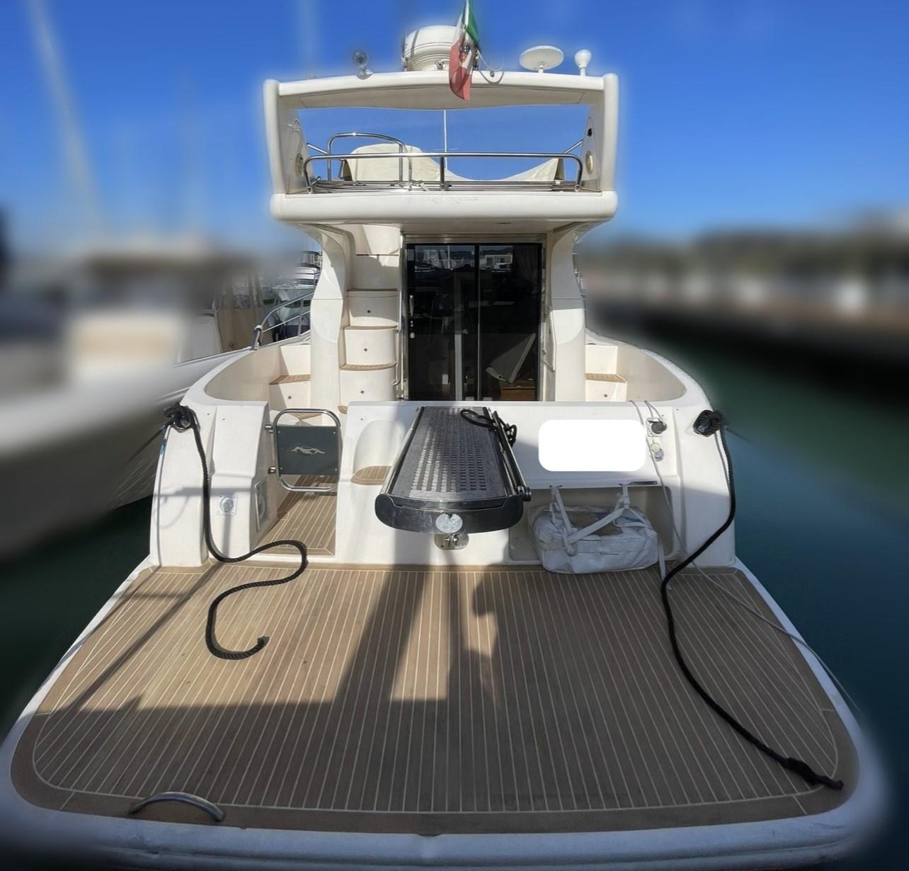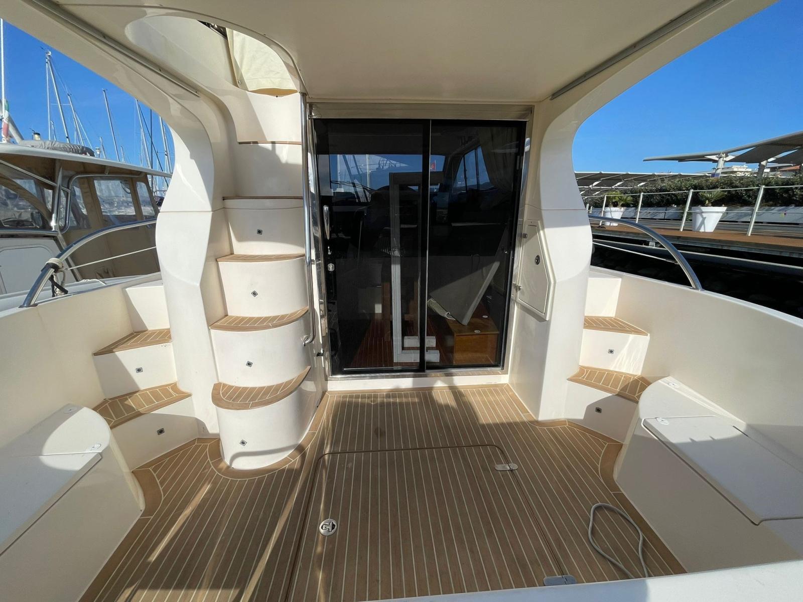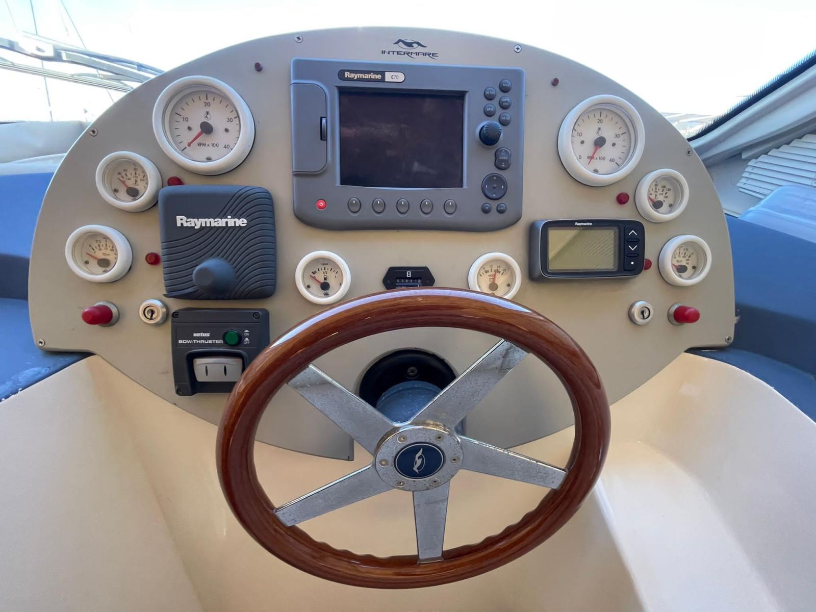 Alarme moteur, Alarme de pompe de cale, Eau sous pression, Douche de cockpit, Flaps hydrauliques, Extincteur(s) fixe(s), Éclairage de courtoisie, Passerelle (Idraulica), Plateforme arrière, Pompe de cale automatique, Pompe de cale manuelle, Cockpit en teck (Flexiteak), Prise de quai, Onduleur, Rollbar (Sul fly), Guindeau électrique, Echelle de bain, table de cockpit, Corne.