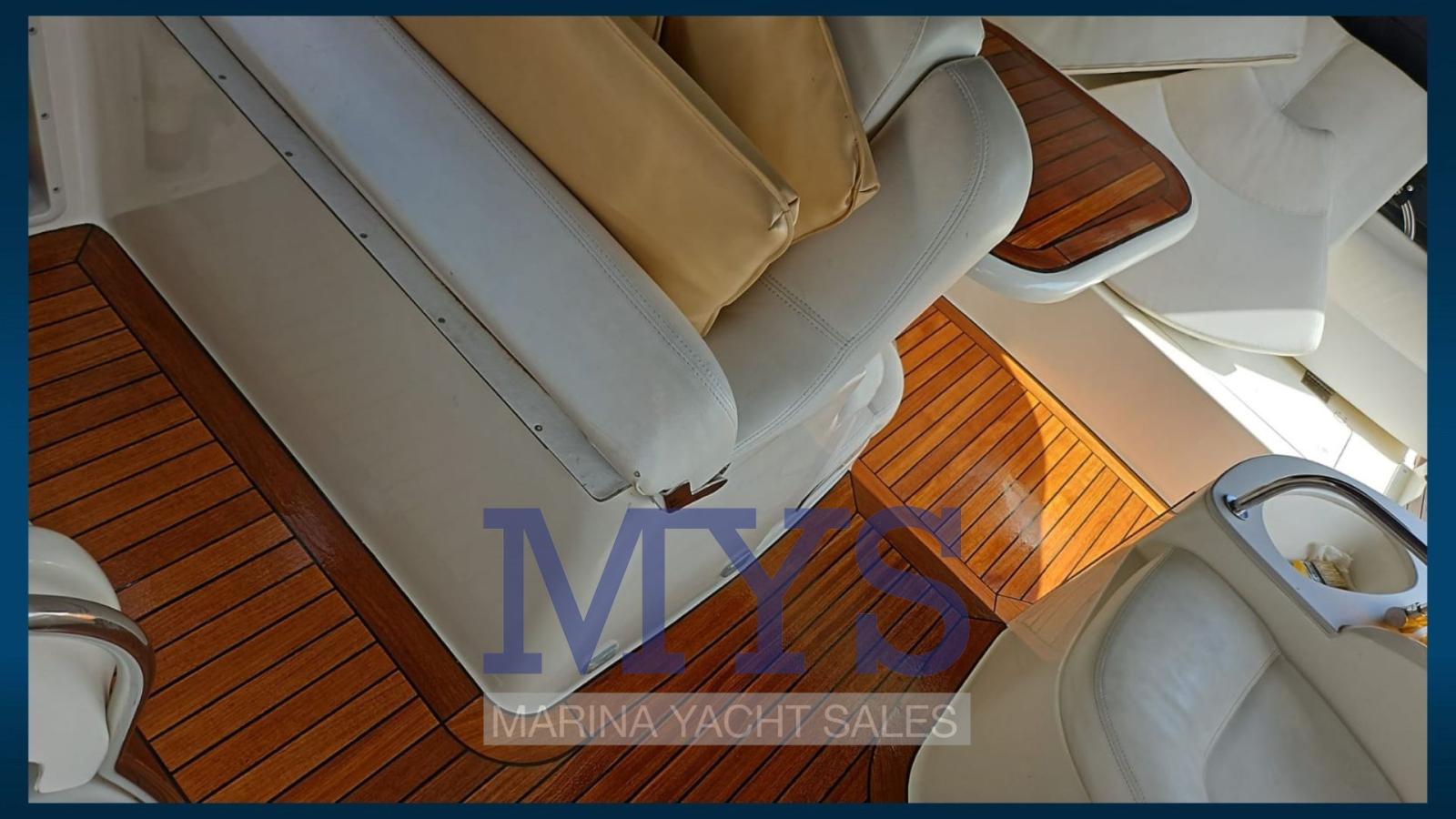 Alarme moteur, Alarme de pompe de cale, Ancre (+ 60 mt di catena), Ouverture du compartiment moteur électrique, Eau sous pression, Radeau de sauvetage (scaduto), Trim hydraulique, 5 Batteries (x 200 Ah nuove 2024), Couleur spéciale (fascia Blu), Douche de cockpit, Phare de poursuite, Flaps hydrauliques, Extincteur(s) fixe(s), Lavabo dans le cockpit, Éclairage de courtoisie, Spots sous-marins (Blu), Passerelle (idraulica), Plateforme arrière (in Teak), Pompe de cale automatique, Pompe de cale manuelle, Porte latérale, Cockpit en teck, Prise de quai, Connexion eau sous pression à quai, Rollbar, Guindeau électrique, Echelle de bain, Système de filtration des eaux usées, table de cockpit, Table pliante de salon, Corne, Pont en teck.