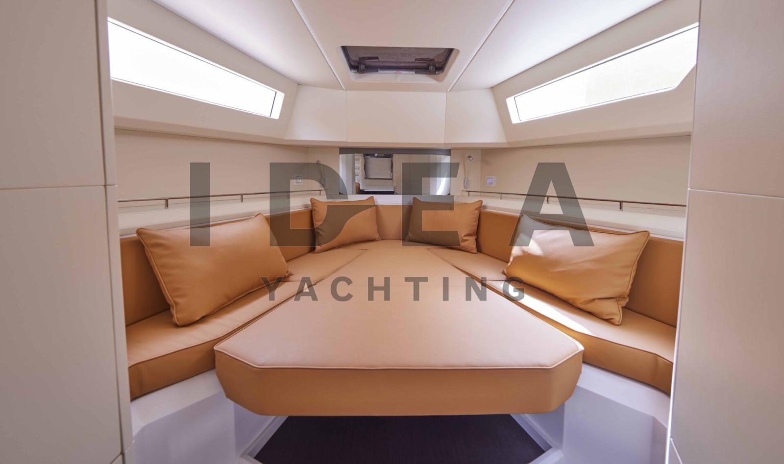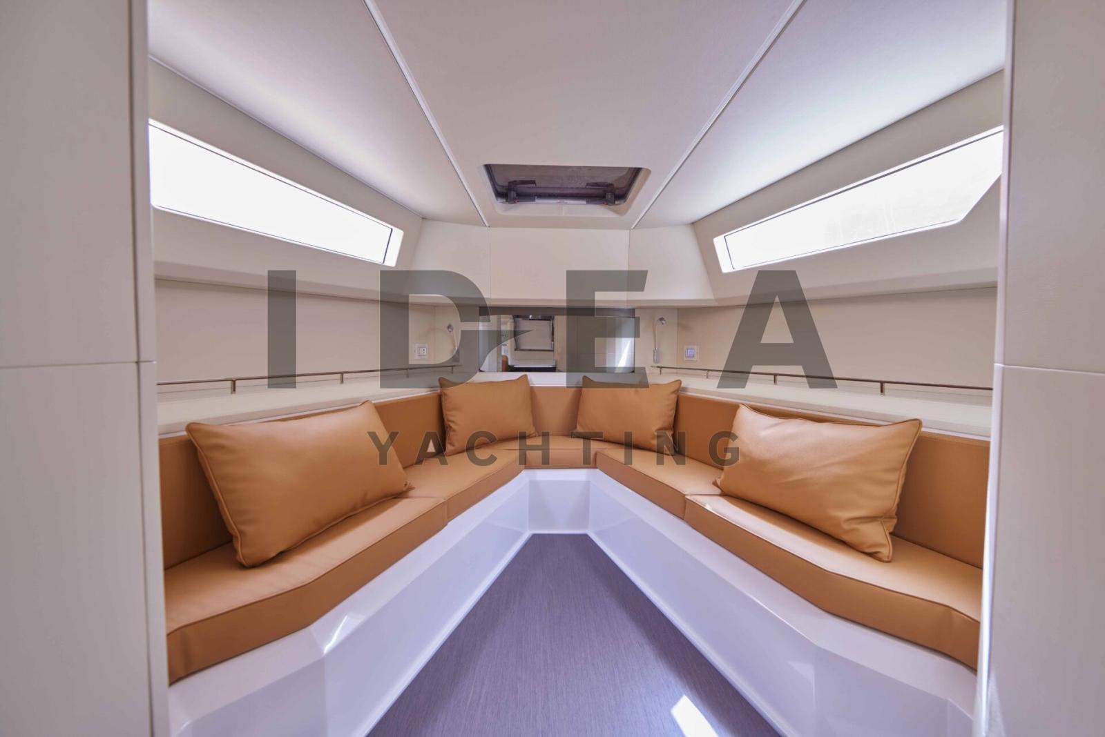 Taud de cockpit, Sellerie complète, Coussin avant, sellerie de cockpit, Taud de console, Taud de siège, 2 Taud de soleil (Bow and Aft manual awnings).