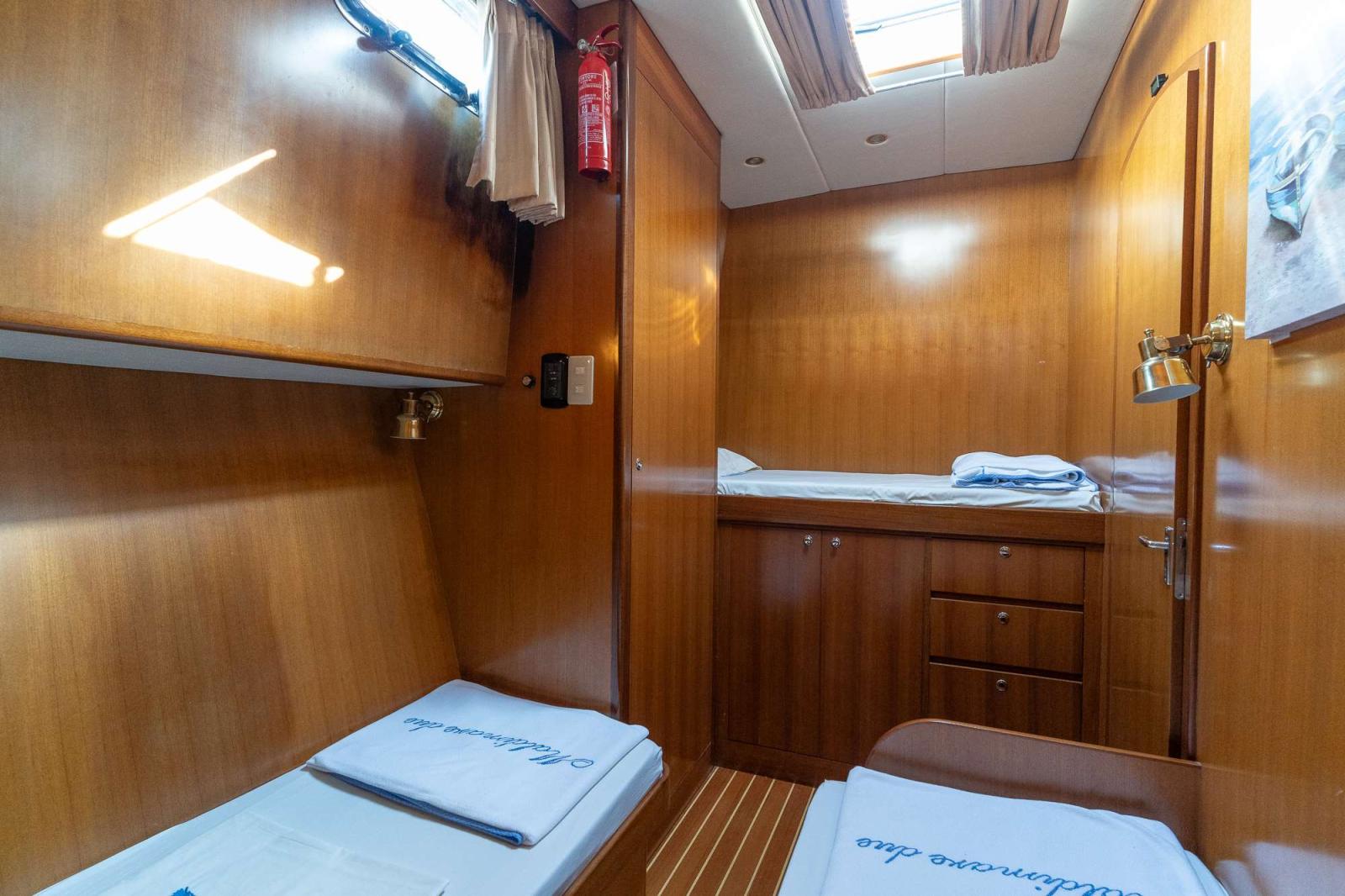 Il y a ensuite deux cabines latérales, dont une avec trois lits.